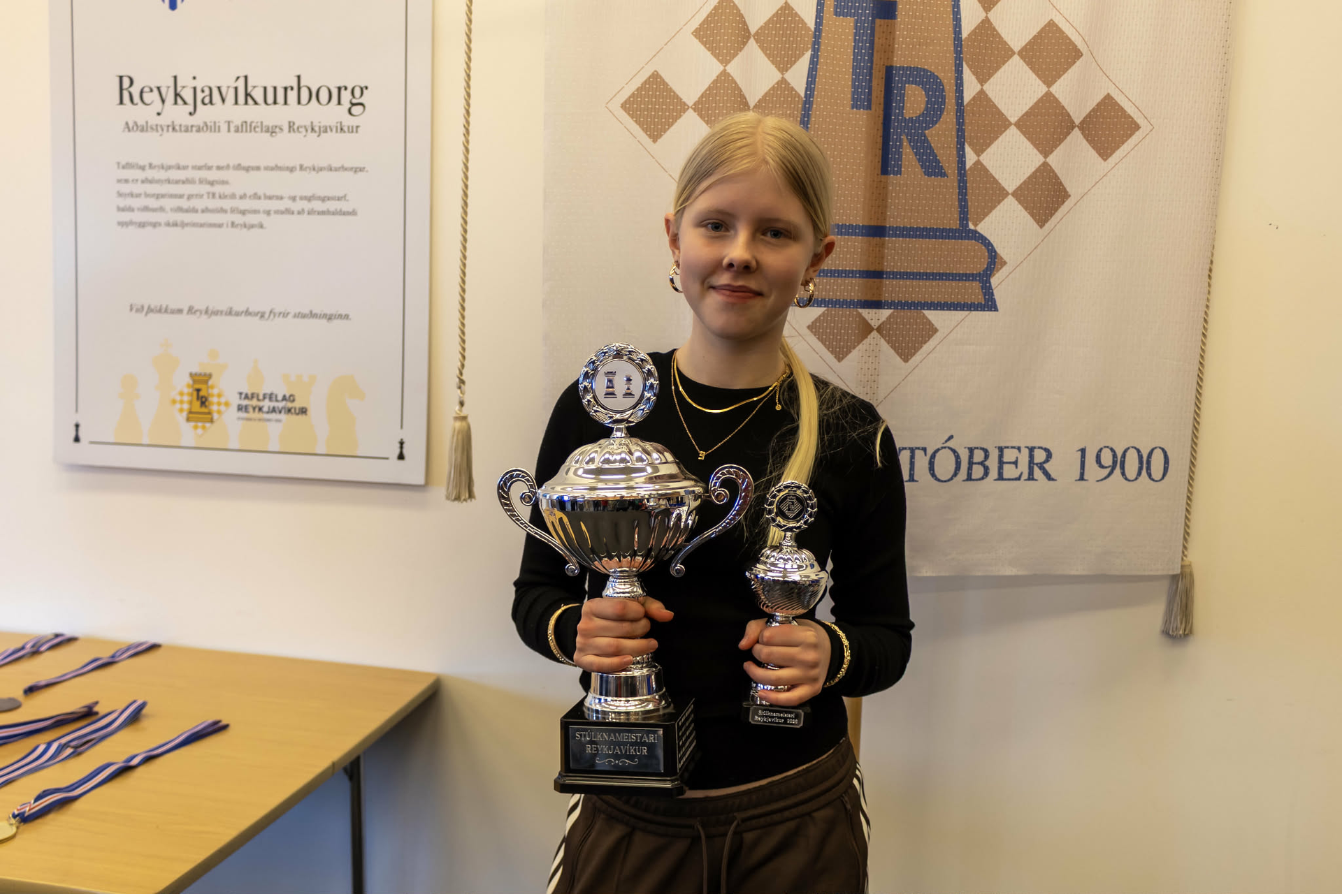 Við Grafarvogsbúar getum svo sannarlega verið stoltir af þessari afreksdömu, Emilíu Emblu B. Berglindardóttur , skákkonu Fjölnis 2025, en hún vann í gær titilinn Stúlknameistari Reykjavíkur 2026. Til hamingju Emilía Embla og Skákdeild Fjölnis þar sem unnið er kraftmikið og einstakt starf undir handleiðslu Helga Árnasonar , fyrrum skólastjóra í Rimaskóla. Fram kemur á FB-síðu Skákdeildar Fjölnis að Emilía hafi teflt í opnum flokki á Stúlkna-og drengjameistaramóti Reykjavíkur og átti að venju góðan dag við taflborðið og uppskar bikara og titilinn Stúlknameistari Reykjavíkur 2026. Hún bætti 50 skákstigum við ELÓ-stigin sín. Ekkert annað en stórkostlegt og til hamingju aftur. - JGH