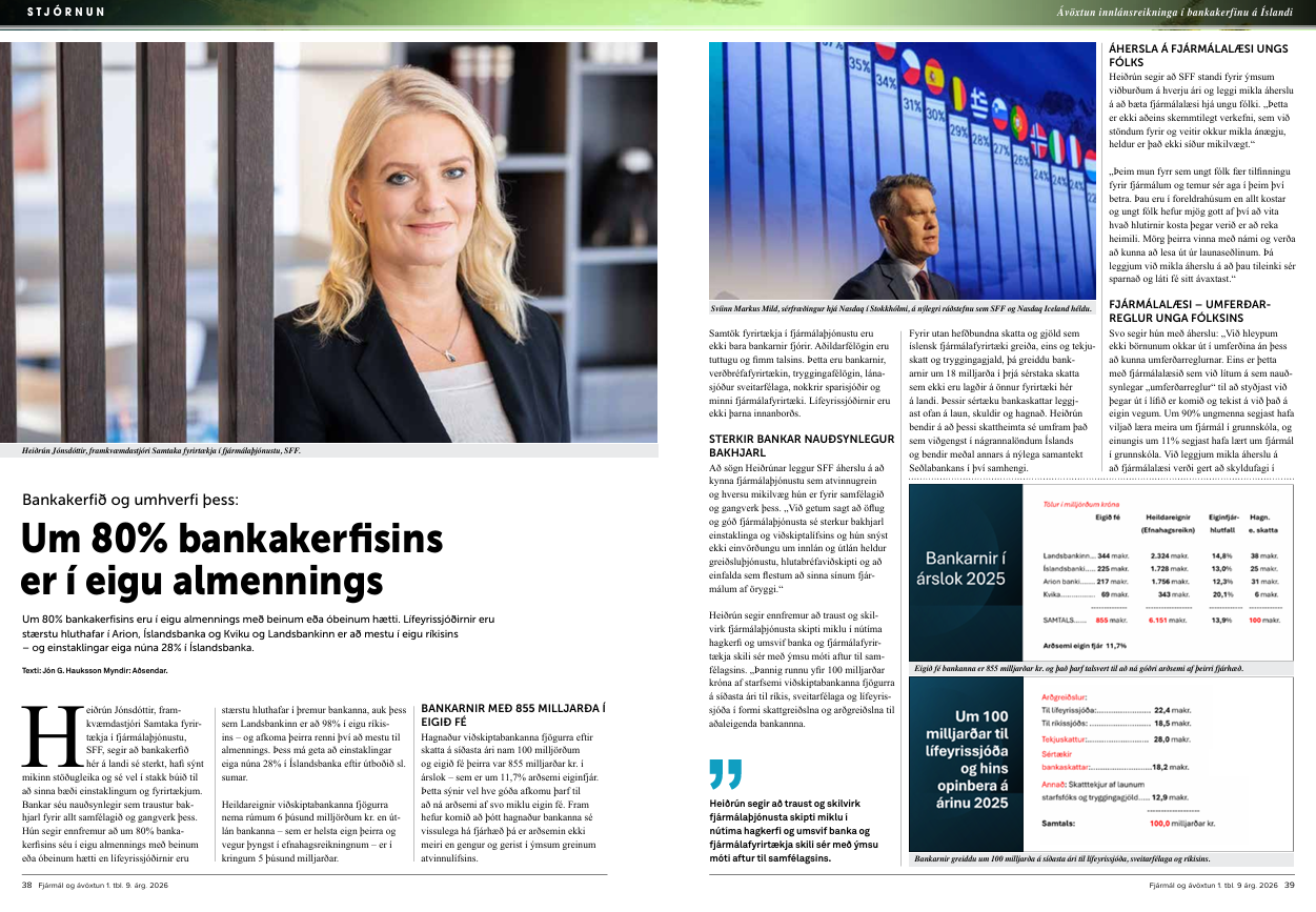 Daði Már Kristófersson fjármálaráðherra kynnti á dögunum nýja fjármálaáætlun sem gerir ráð fyrir að sértækur bankaskattur hækki um 6 milljarða á ári. Sértækir bankaskattar eru núna rúmir 18 milljarðar og fara því í 24 milljarða króna við þessa breytingu. Þetta eru skattar sem einvörðungu eru lagðir á bankana og eru því umfram það sem lagt er á önnur fyrirtæki í landinu. Bankastjórar bæði Íslandsbanka og Arion banka, þeir J ón Guðni Ómarsson og Benedikt Gíslason , hafa báðir sagt þessa hækkun koma á óvart og að hún muni lenda bæði á hluthöfum bankanna og viðskiptavinum enda sé líklegt að vaxtamunur aukist á ný. ( Sjá grein Benedikts Gíslasonar. )