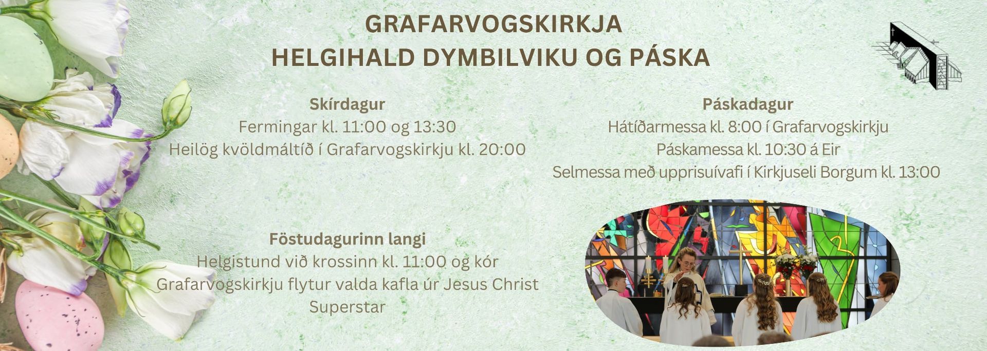 Það er vert að vekja athygli á mjög fjölbreyttri dagskrá í Grafarvogskirkju núna í dymbilvikunni og um páskana. Má þar nefna fermingar, heilaga kvöldmáltíð, helgistund við krossinn og söng kórsins á lögum úr söngleiknum Jesus Christ Superstar. Hátíðarmessan verður svo kl. 8:00 að morgni á páskadag, eftir það páskamessa á Eir og Selmessa með upprisuívafi í Borgum kl. 13:00 á páskadag. Fermingarmessurnar á morgun , skírdag, eru kl. 11:00 og 13:30 en sóknin okkar í Grafarvogi er sú stærsta á landinu og fjölmörg börn sem fermast í kirkjunni á ári hverju. Annað kvöld verður svo heilög kvöldmáltíð í kirkjunni og hún hefst kl. 20:00. Á föstudaginn langa verður helgistund við krossinn og þá mun kórinn syngja valda kafla úr söngleiknum Jesus Christ Superstar. Páskamessan verður svo að venju kl. 8:00 að morgni en hún hefur jafnan verið vel sótt. Helgir dagar framundan og starfið í okkar fallegu kirkju fjölbreytt og til fyrirmyndar. - JGH