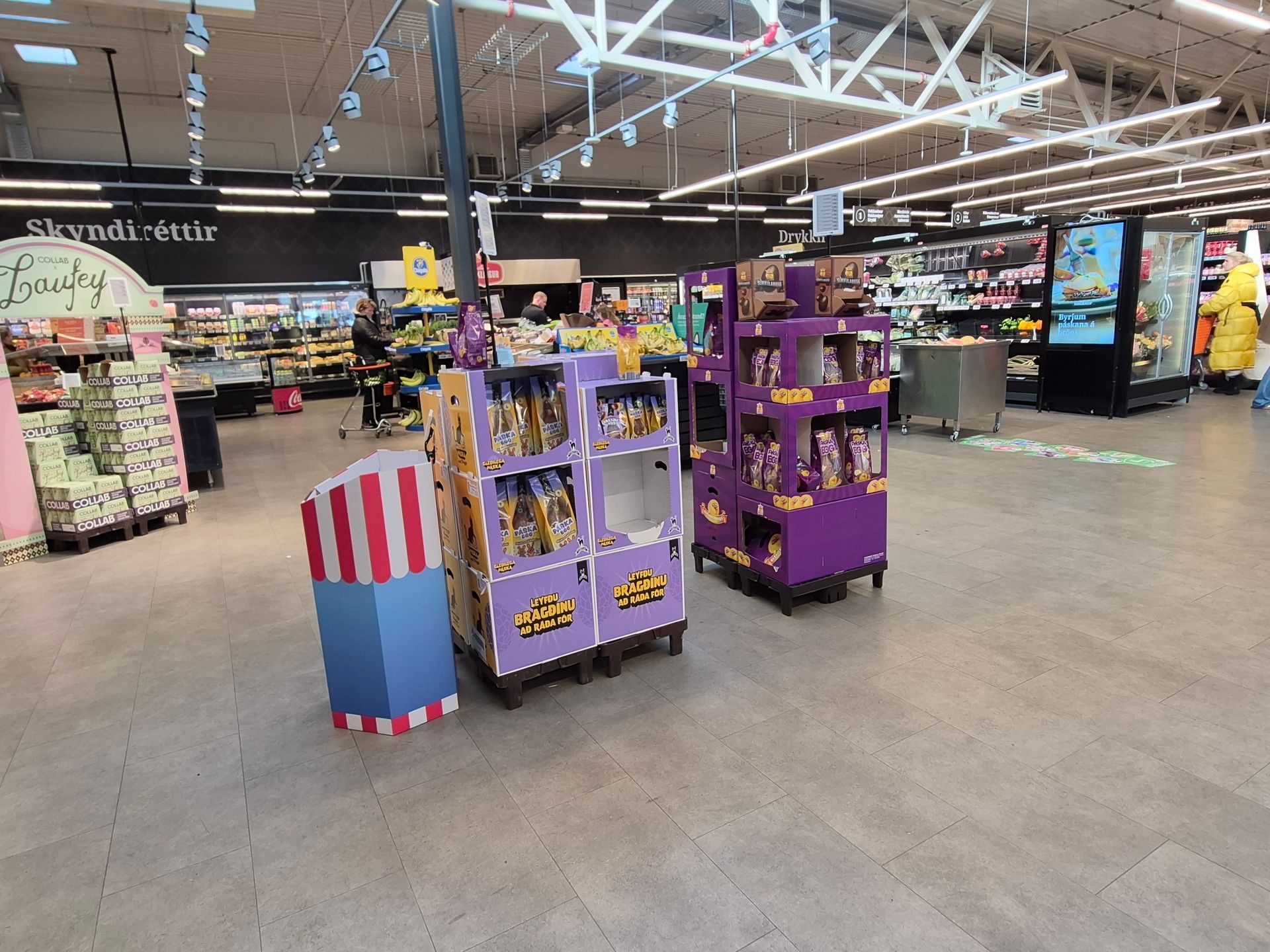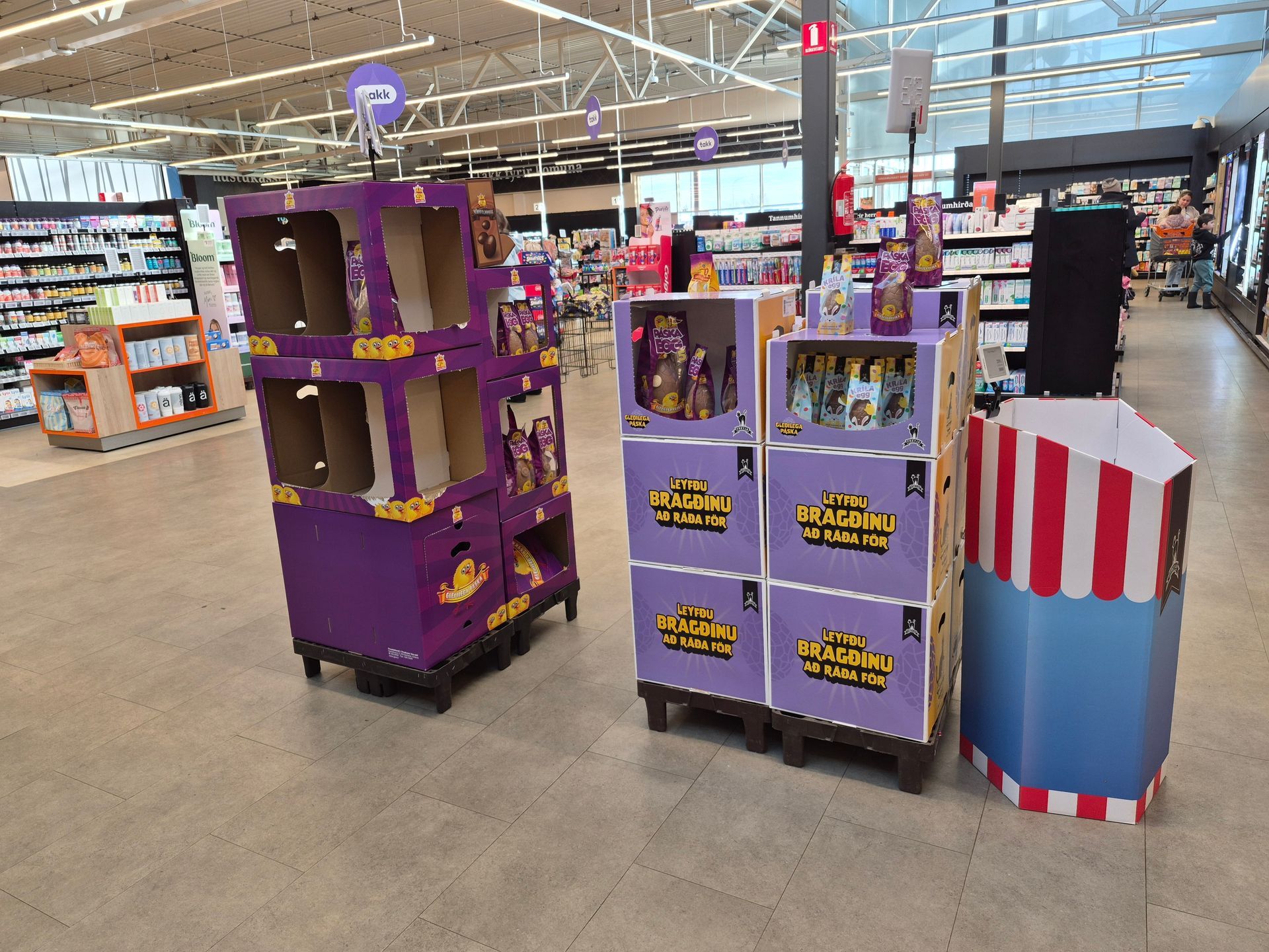Í Bónus í Grafarvogir hefur varla verið hægt að þverfóta fyrir stórum og miklum páskaeggjastæðum undanfarnar vikur. En nægt var olnbogarýmið um kvöldmatarleytið á laugardagskvöld fyrir páskadag.