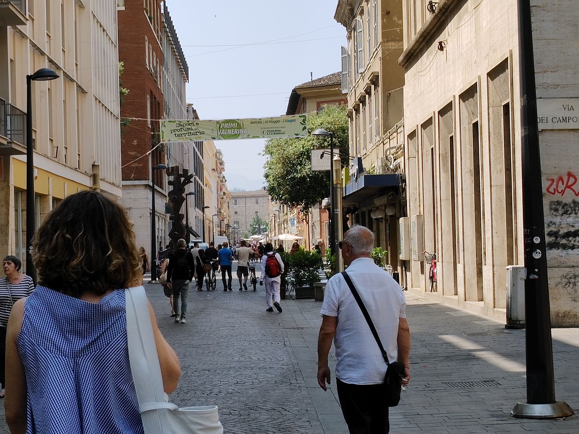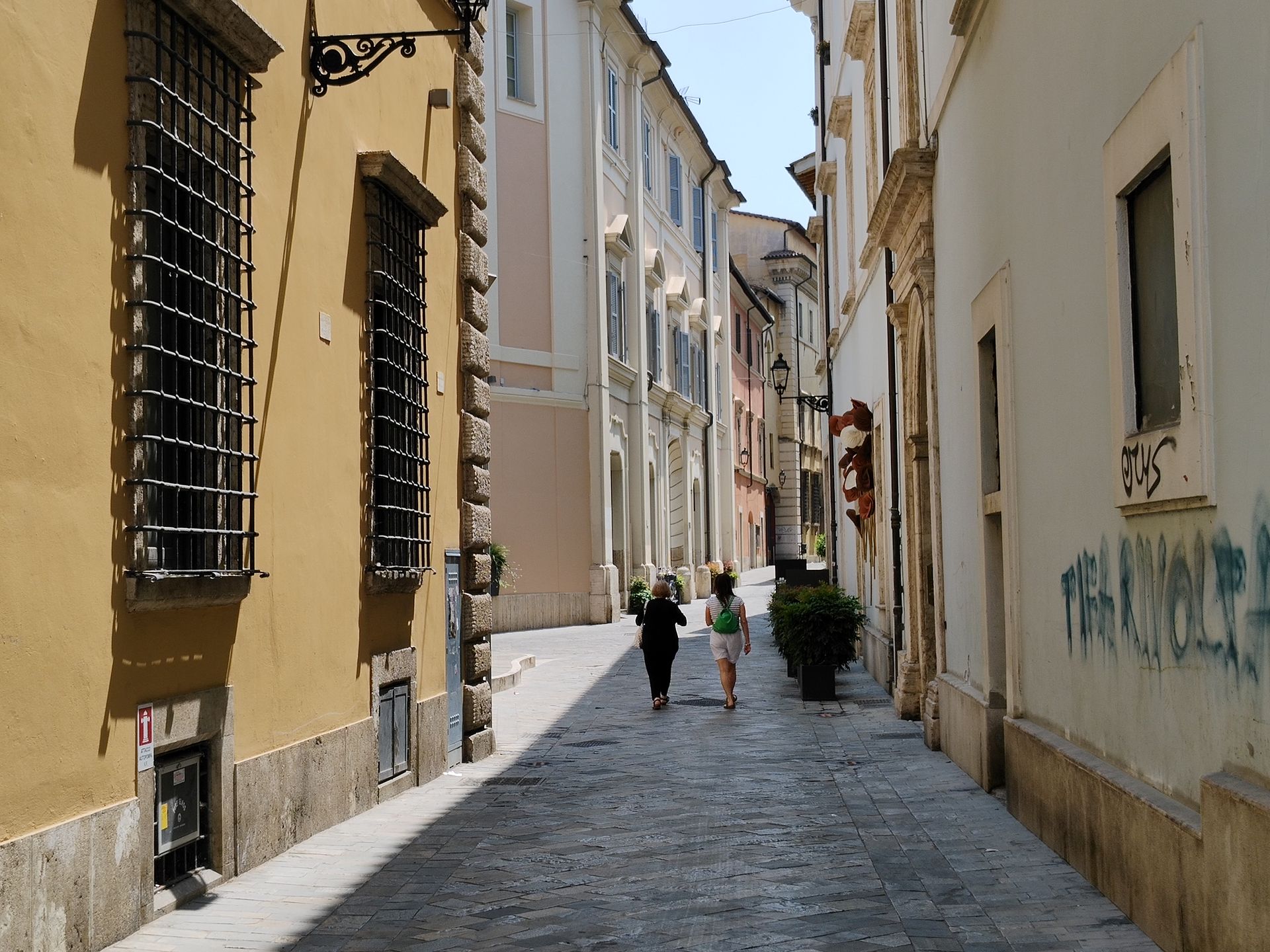 Torgið í Terní. Fáir á ferð í hita dagsins.