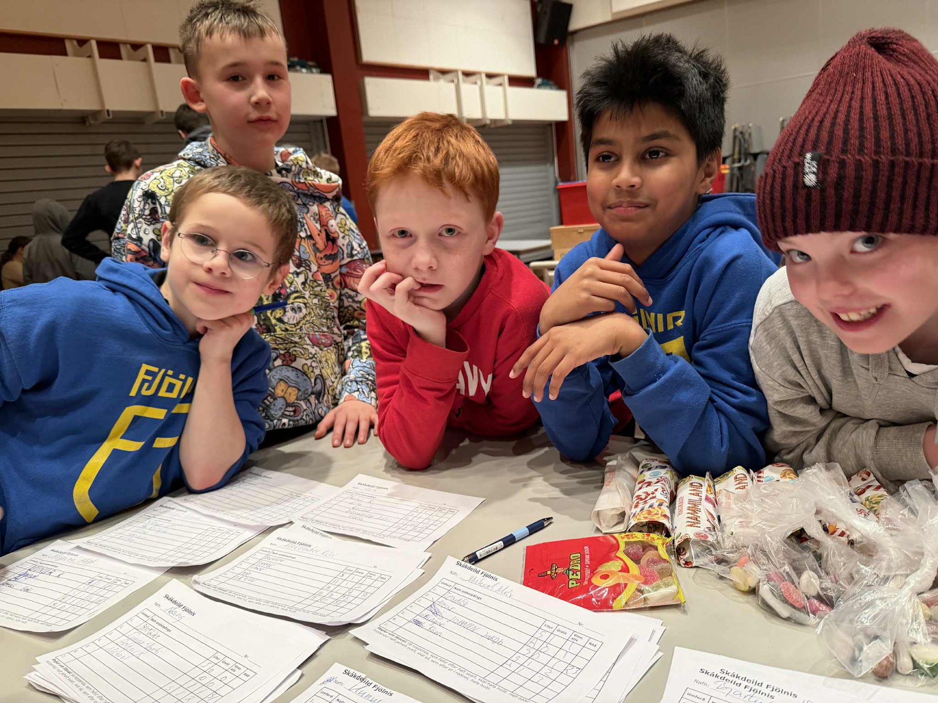 Stórskemmtileg mynd Helga Árnasonar. Nóg af nammipokum á borðum og hér bíða menn spenntir eftir verðlaunaafhendingu og happdrættinu.