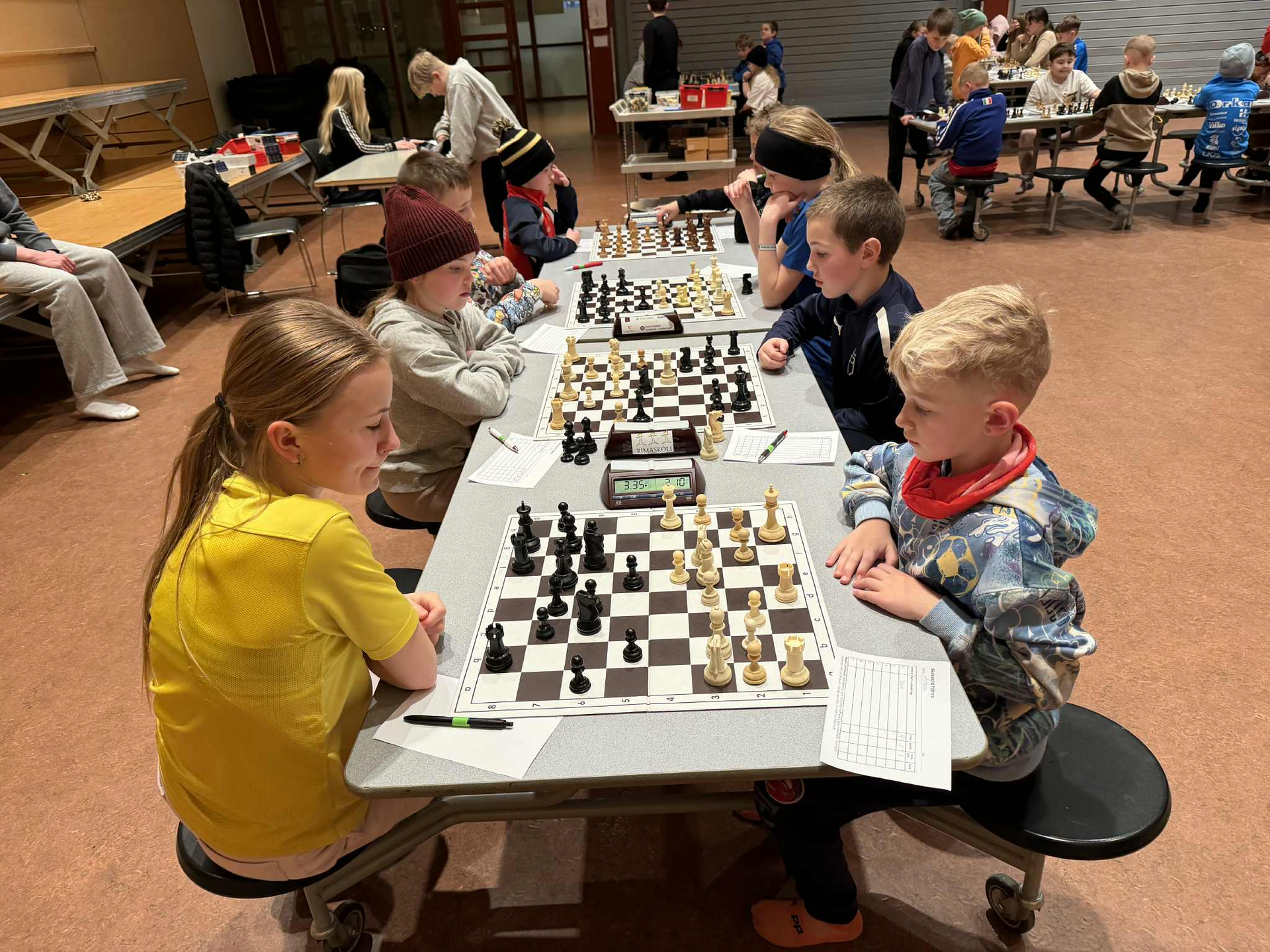 Í frétt frá skákdeildinni segir að teflt hafi verið var á tveimur stöðum og auk Helga Árnasonar stýrðu æfingunni ungmennin Sóley Kría, Ingi Hrafn, Emilía Embla og Emilía sem stóðu sig frábærlega og ná vel til krakkanna.