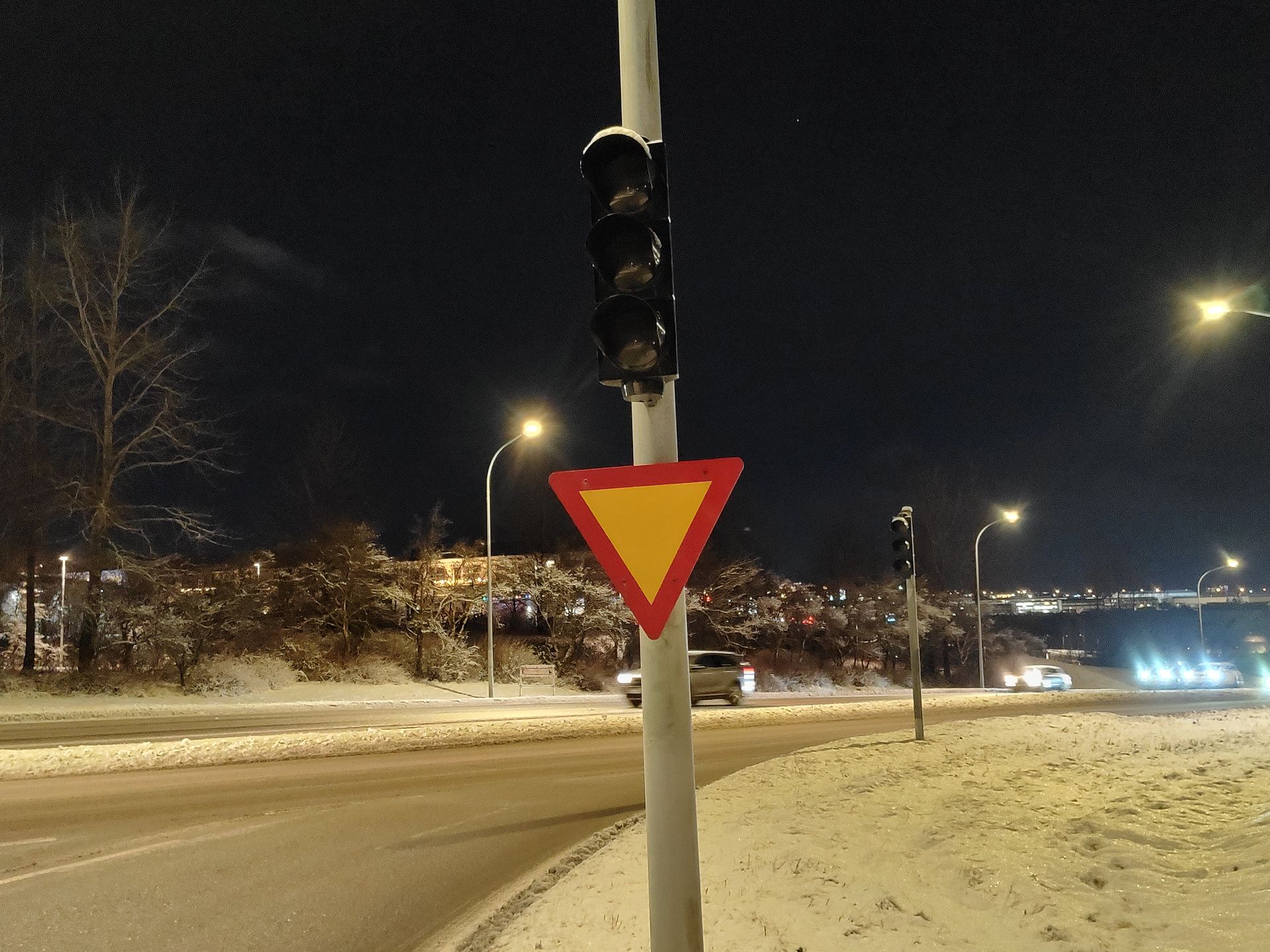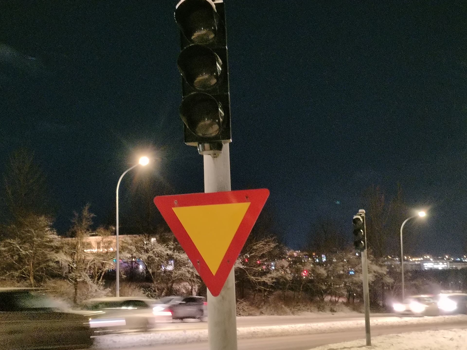 Skær eru ljósin á bílunum - en vitarnir eru óvirkir.