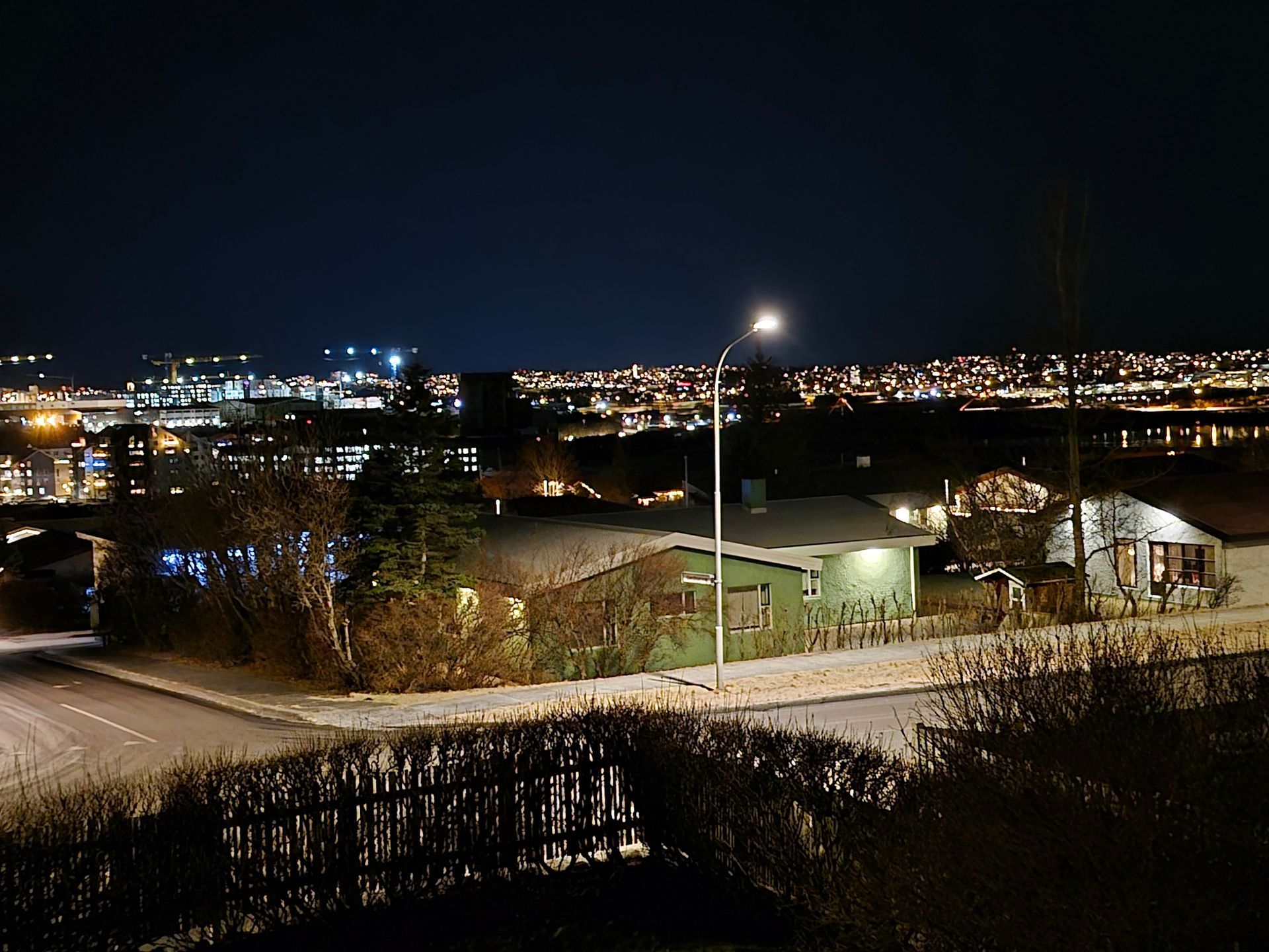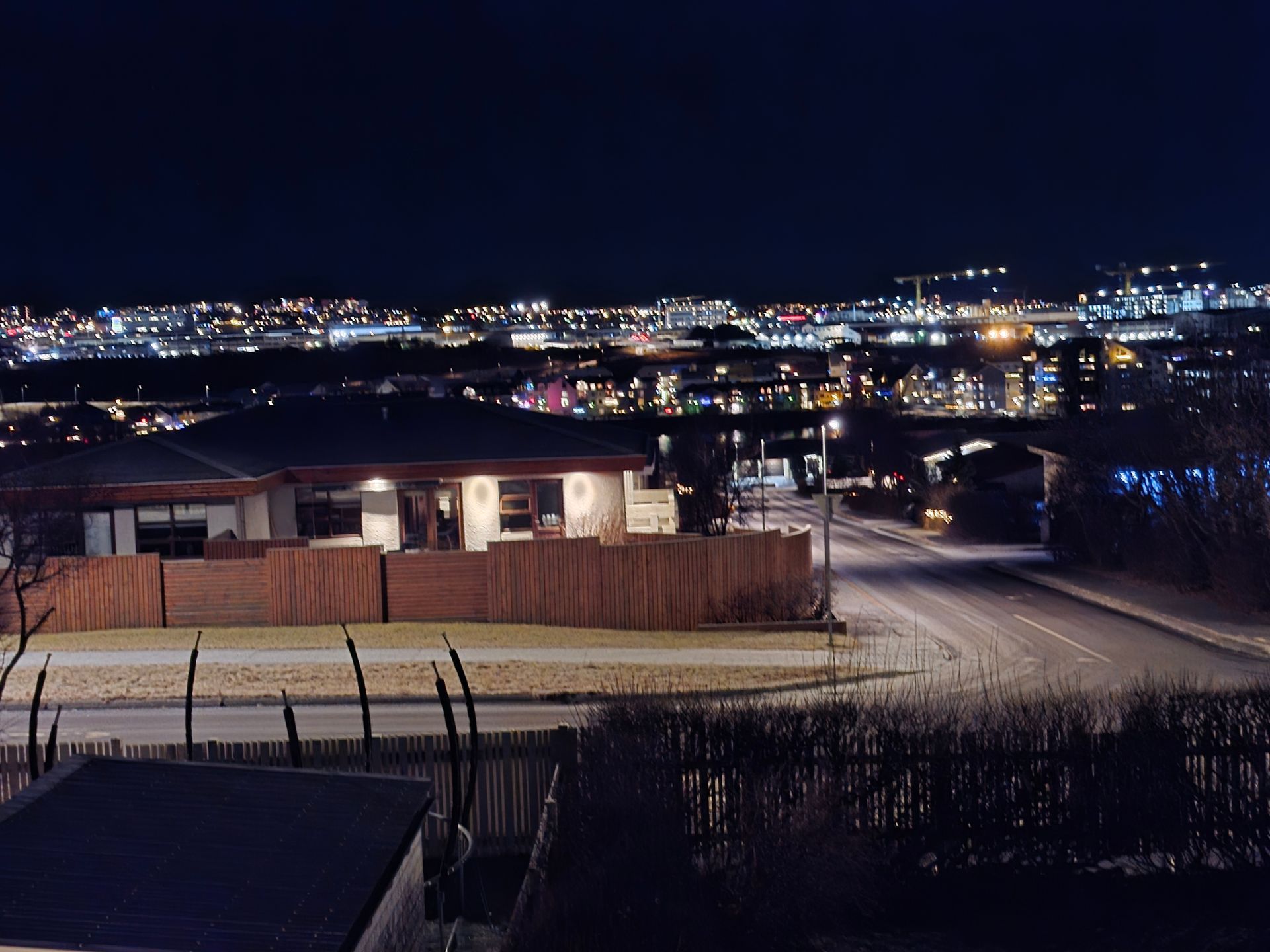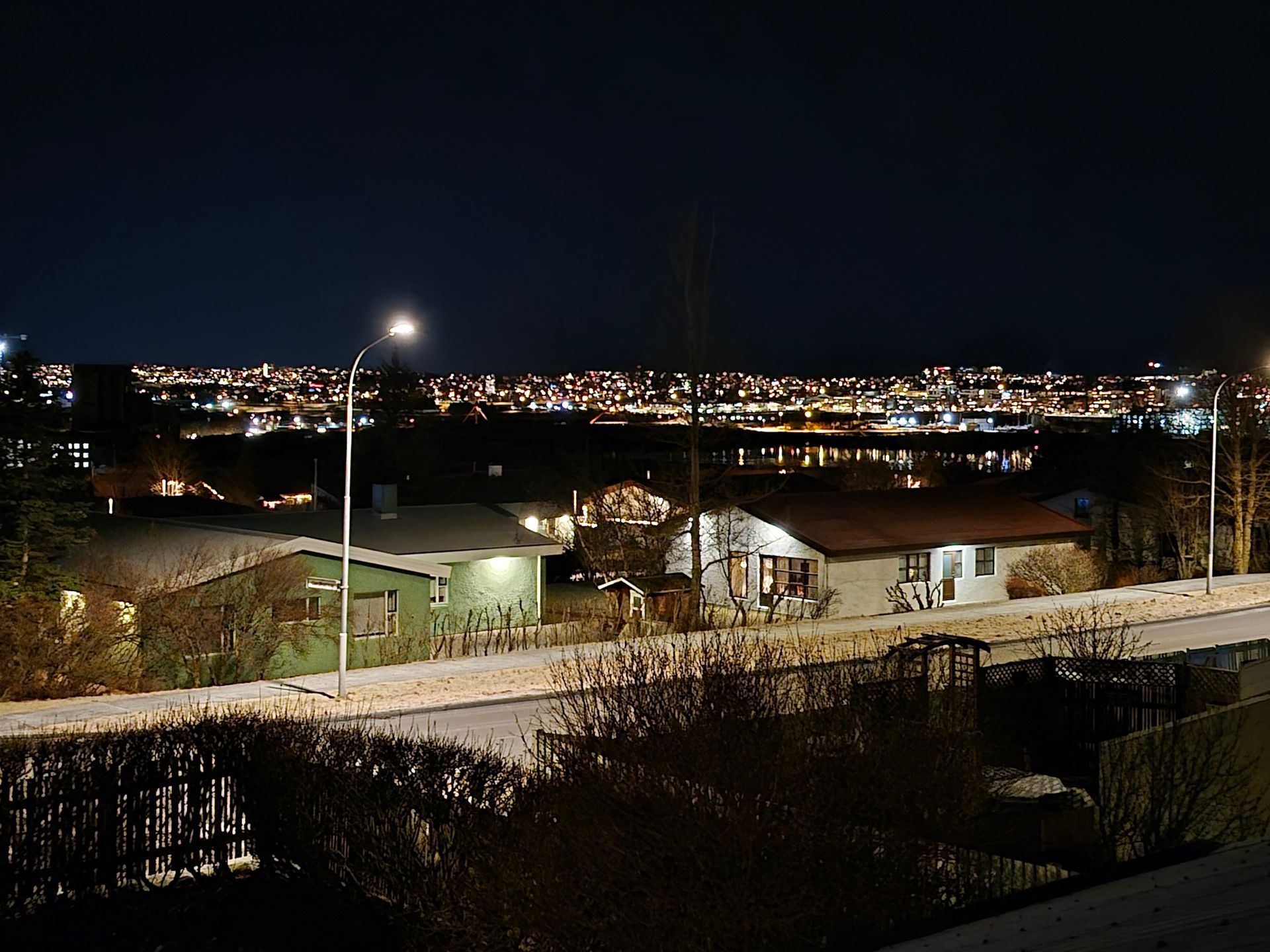 Kvöldsónata í kyrrðinni í Grafarvogi - borgarljós og Bryggjuhverfi