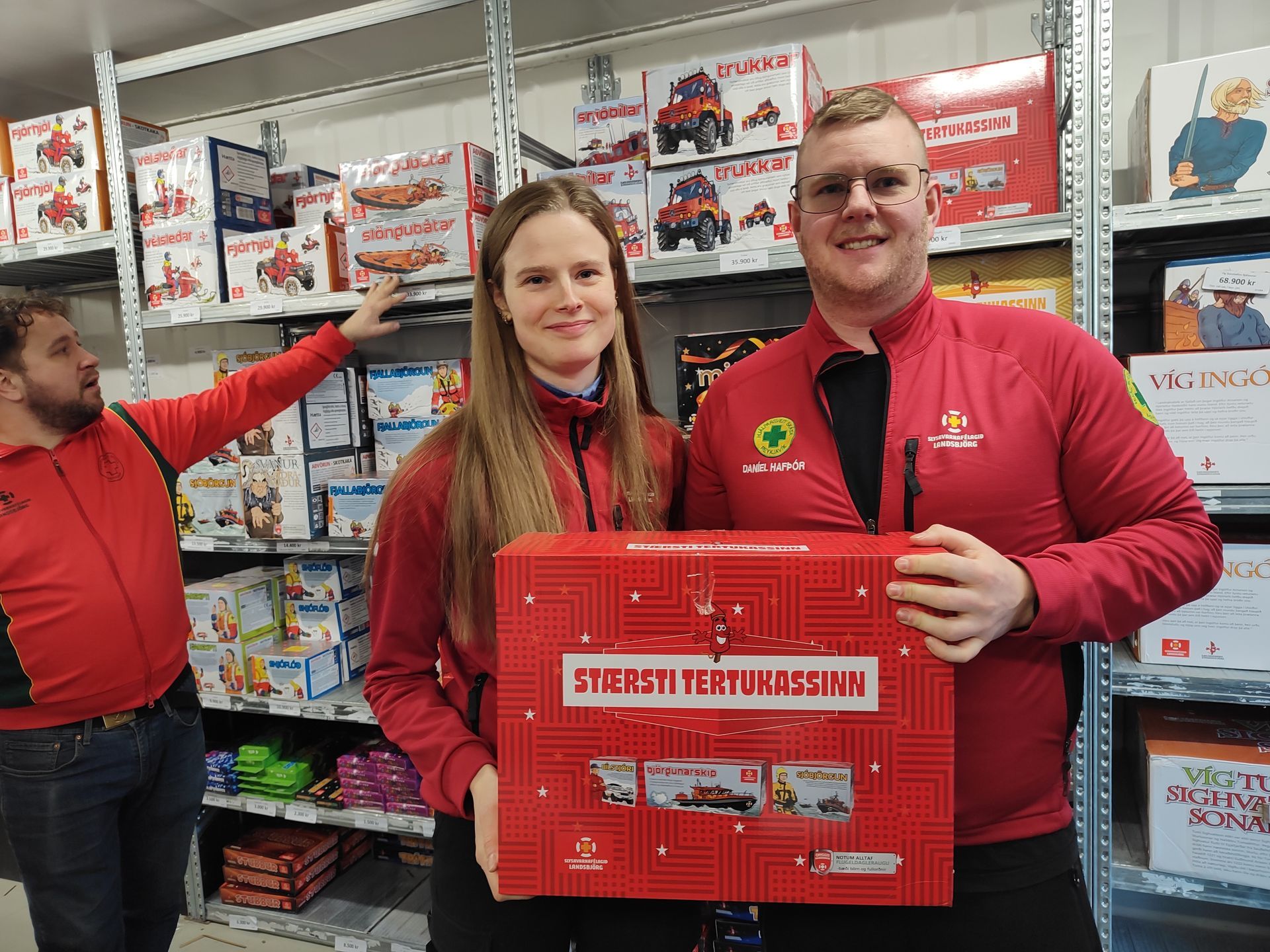 Ísabella Ingadóttir og Daníel Hafþór Ómarsson, verslunarstjórar flugeldasölu Hjálparsveita skáta og Landsbjargar í Spönginni.