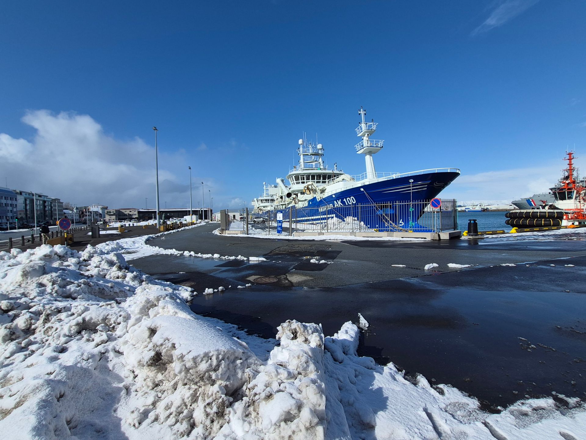 Tignarleg og kraftmikil sýn á Miðbakkanum við Reykjavíkurhöfn; bláir Brimarar.