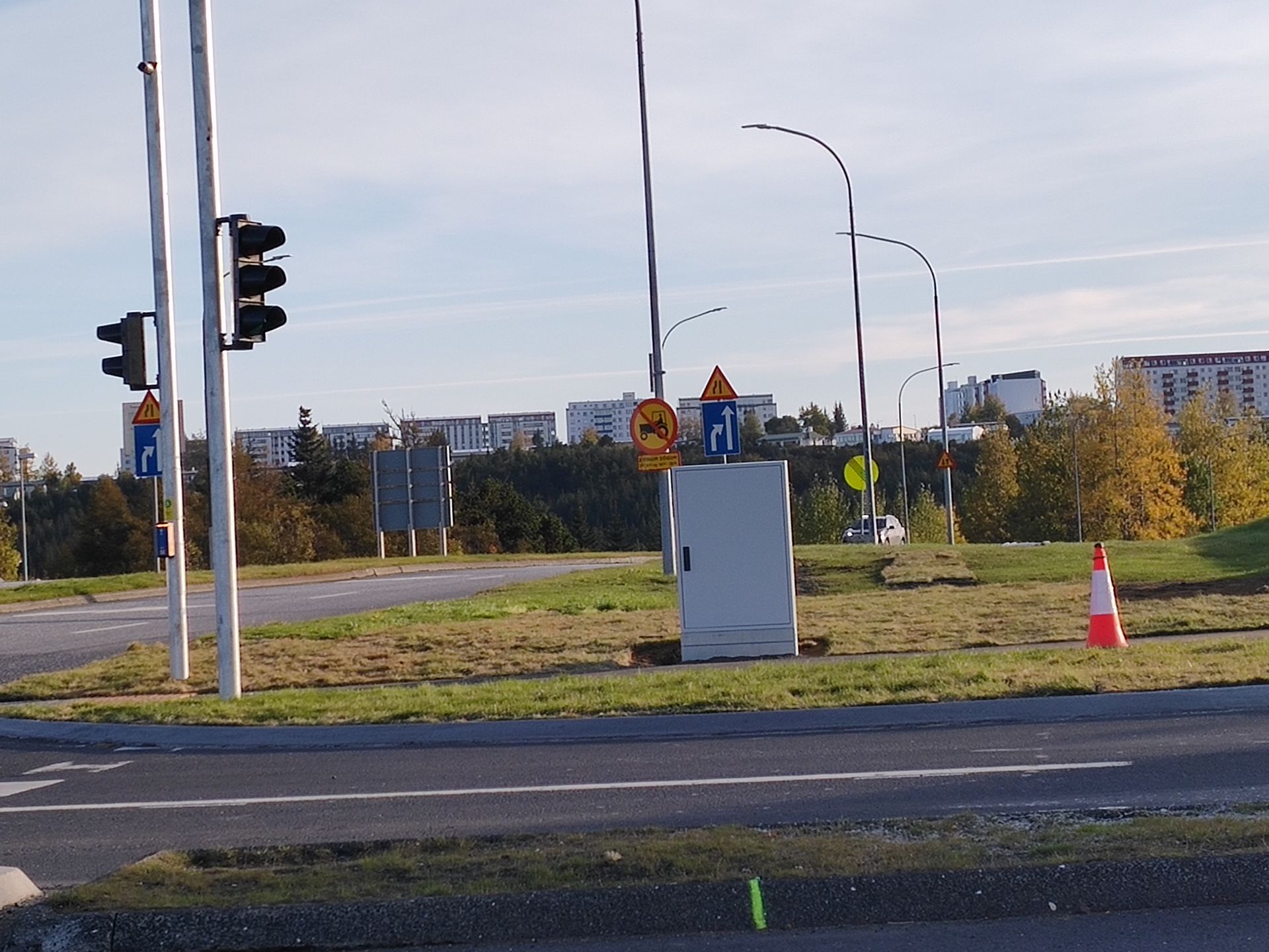 Gráu kassarnir við gatnamótin geyma hugbúnaðinn og taka við upplýsingum frá skynjurum til að mæla flæðið. Tímastillingar eru engu að síður ennþá við öll gatnamótin þó þær séu mismunandi innan dagsins og sólarhringsins.