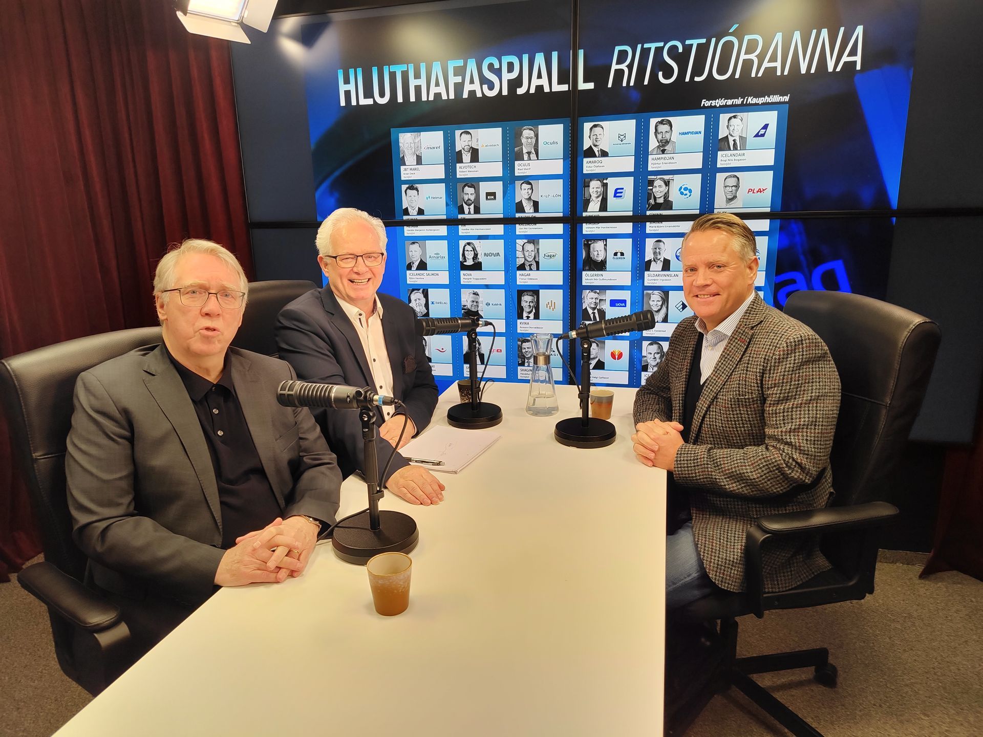 Við tökum þáttinn jafnan upp í hádeginu á föstudögum. Nýjasti þátturinn sem tekinn var upp sl. föstudag þar sem við fengum þá Heiðar Guðjónsson, fjárfesti og nýkjörinn formann stjórnar Íslandsbanka, og Grím Sæmundsen, forstjóra Bláa lónsins
