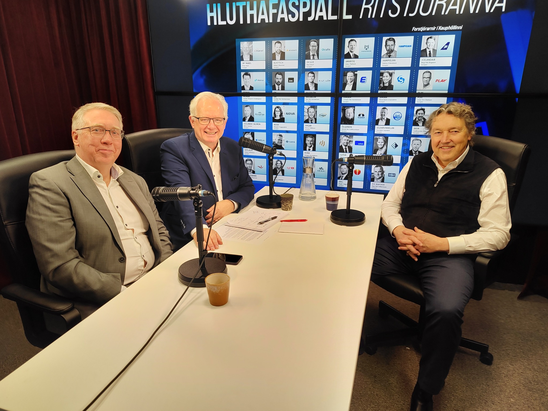 Það var gestkvæmt hjá okkur gömlu brýnunum í þættinum sem við tókum upp í hádeginu í gær og sýndur er á efnisveitunni Brotkast.is Guðmundur Kristjánsson, forstjóri Brims, Sylvía Kristín Ólafsdóttir, forstjóri Nova, og Helgi Vífill Júlíusson, hlutabréfagreinandi hjá Reitun (IFS) mættu í þáttinn.