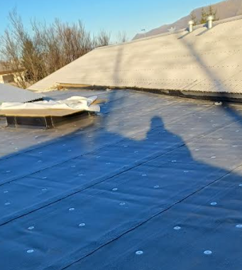 Þessa mynd fékk Grafarvogur.net senda frá íbúa í hverfinu sem segir að nokkuð sé um liðið síðan einhver sást þarna við vinnu. En hvað með þennan frágang á þakinu?