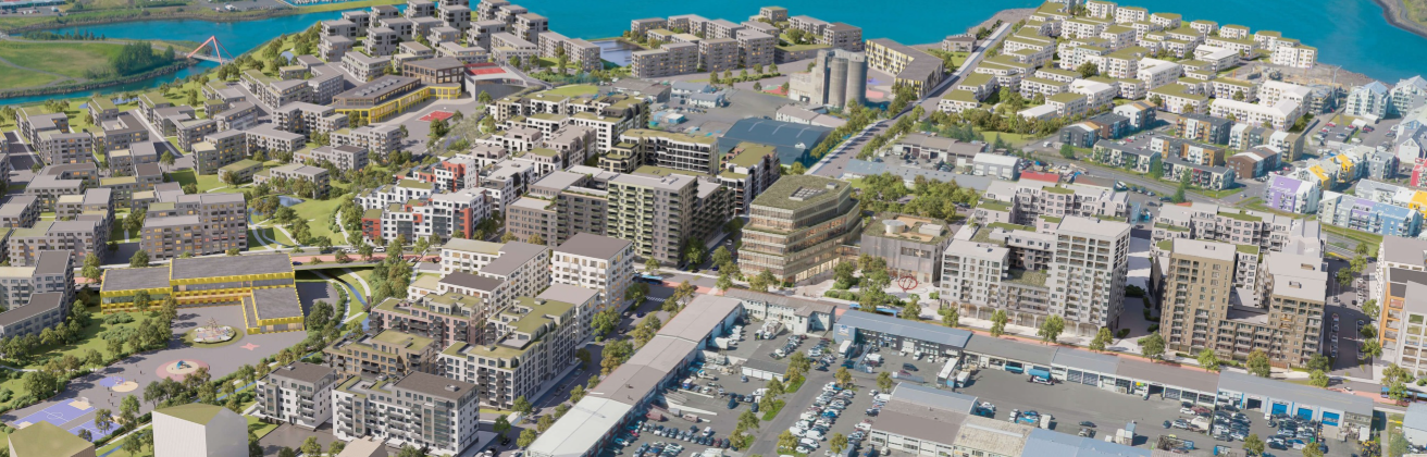 GRÆNT OG ÞÉTT. Í samþykkt meirihlutan fyrir hverfinu segir að „grófu iðnaðarsvæði sé umbreytt í grænt og þétt íbúðahverfi við lykilstöðvar borgarlínu.“