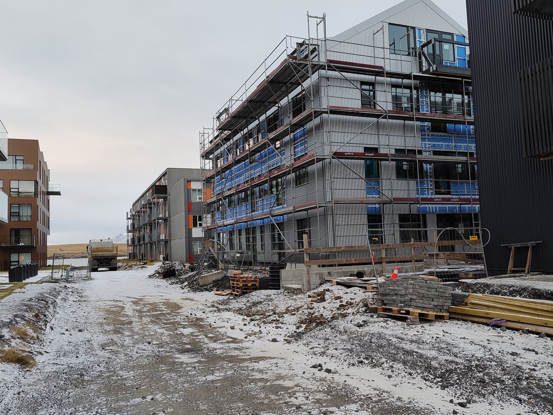 Þétting byggðar. Hér er verið að troða niður nýju fjölbýlishúsi við Jöfursbás 9 með 27 íbúðum alveg ofan í Jöfursbás 11. Ekki hafði verið gert ráð fyrir þessu húsi í upphafi. Engin bílastæði fylgja þessum nýju íbúðum og því eykst bílastæðavandinn enn meira þegar íbúar hafa flutt þarna inn.