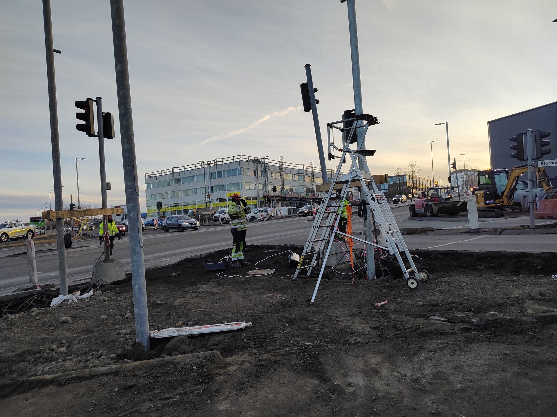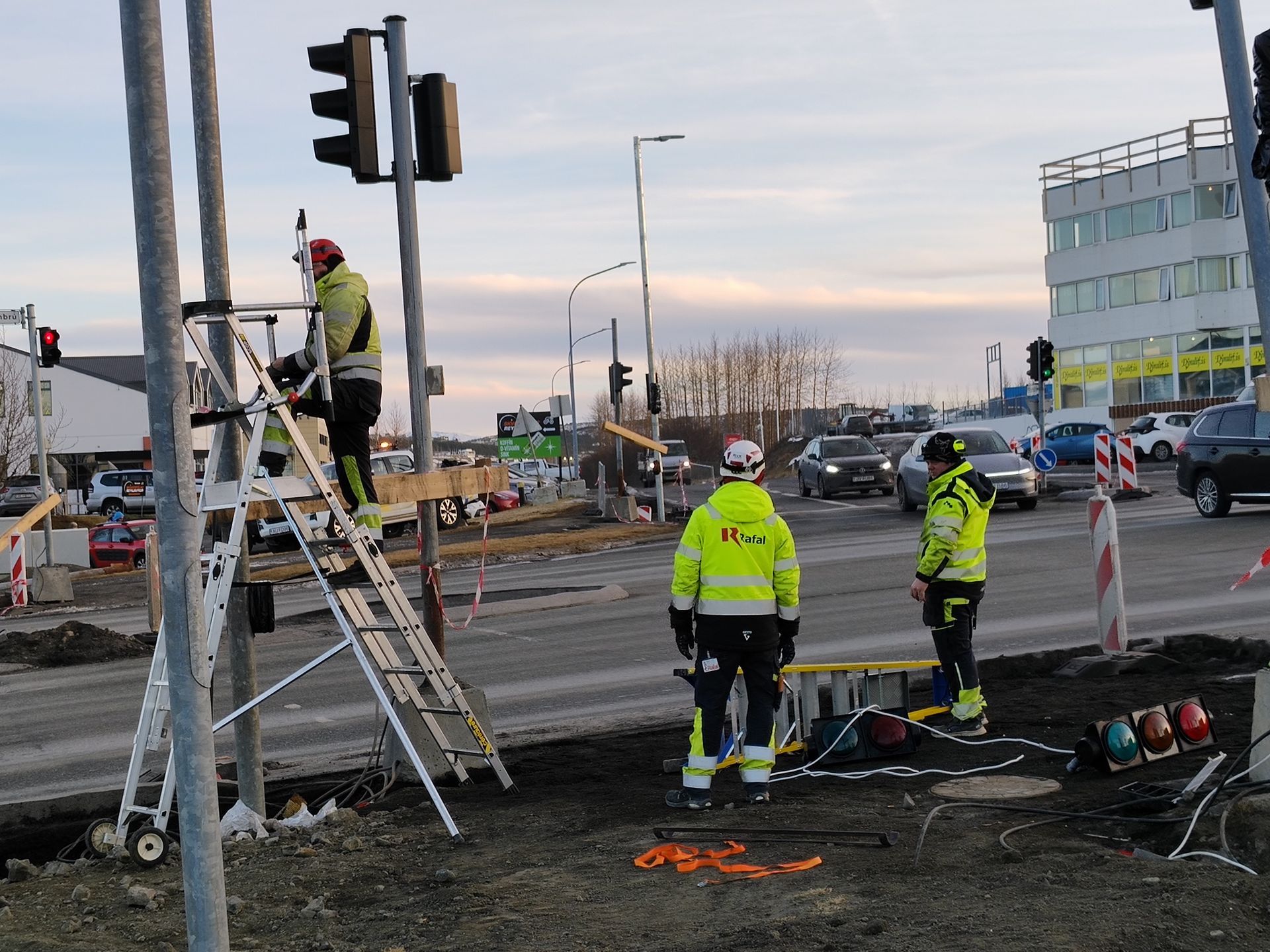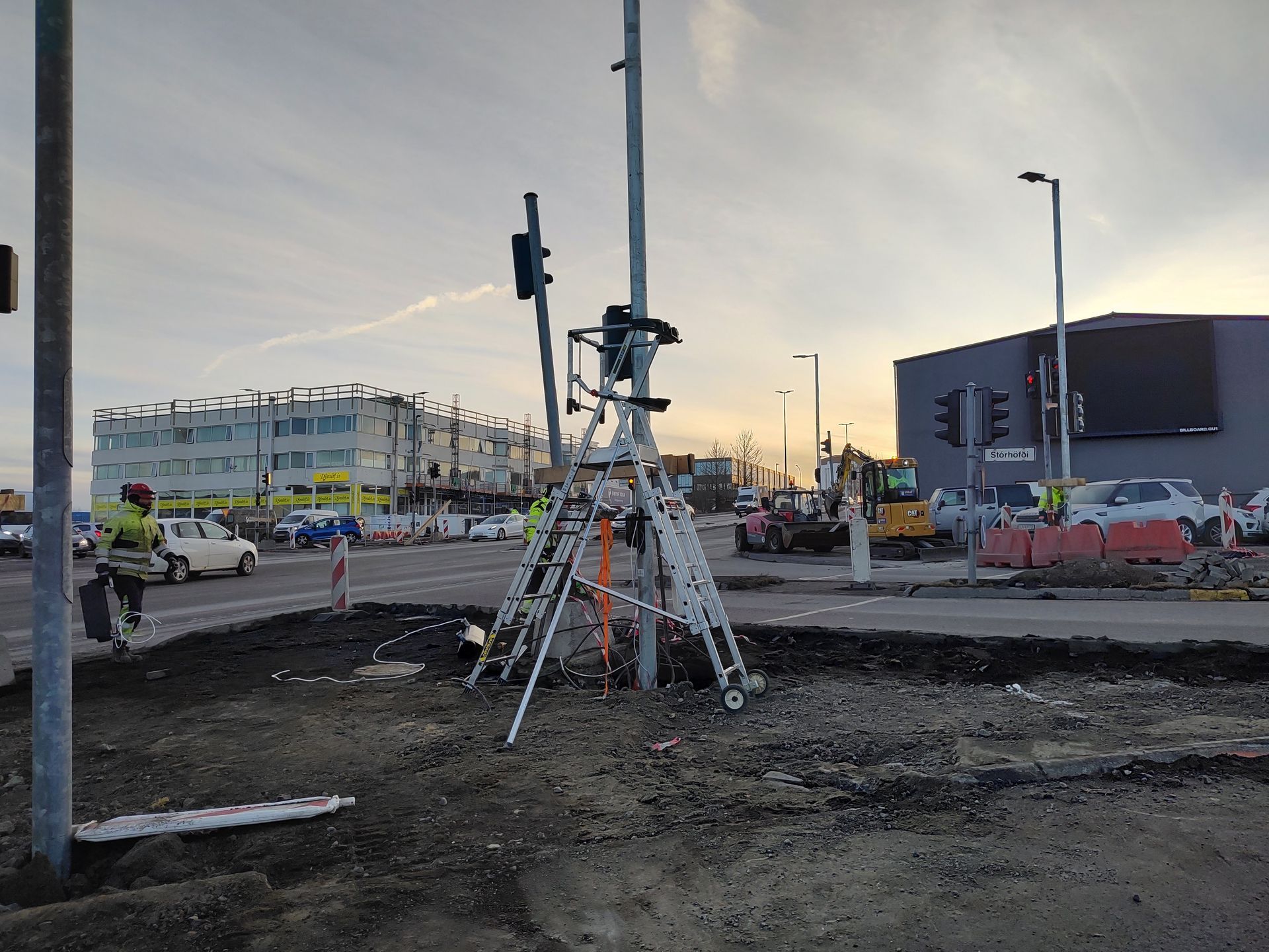Jæja, loksins eitthvað að gerast - snjallljósin jafnvel í gagnið í lok næstu viku. Sumir nýju stauranna virðast skakkir