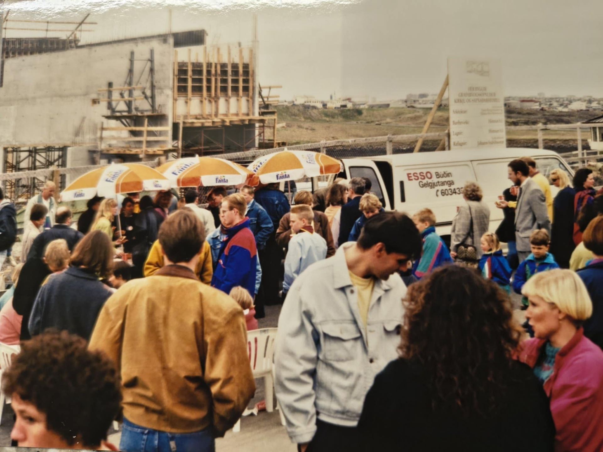Framkvæmdir við byggingu kirkjunnar hófust árið 1991. Hér er verið að steypa plötuna fyrir aðalsal kirkjunnar.