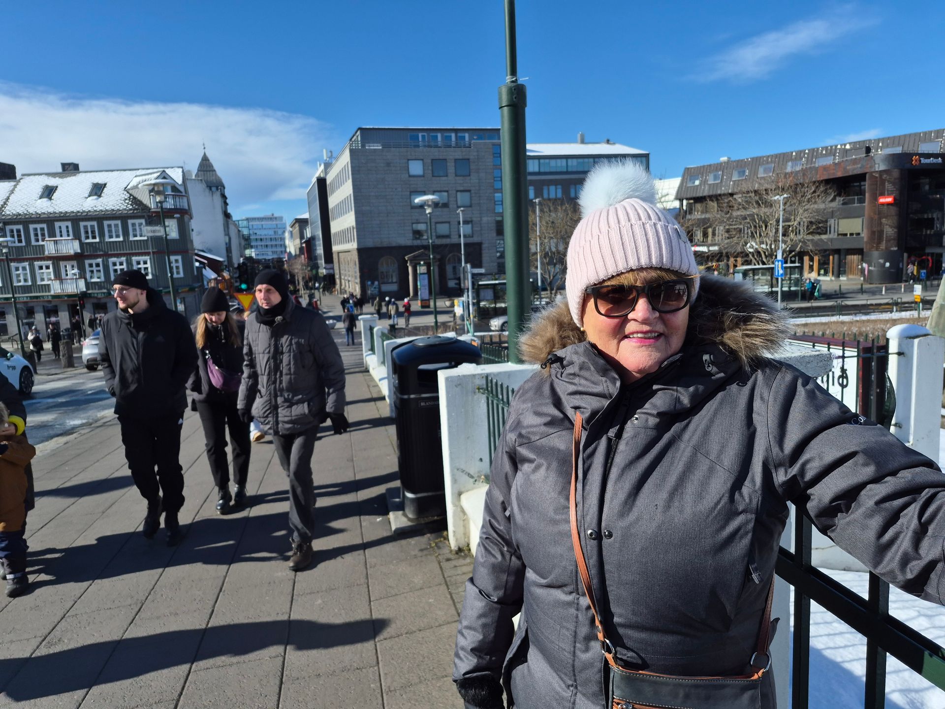 Svolítið gluggaveður. Auðvitað þurfti að klæða sig vel á bæjarröltinu. Helga Brynleifsdóttir, annar eigenda Grafarvogur.net.