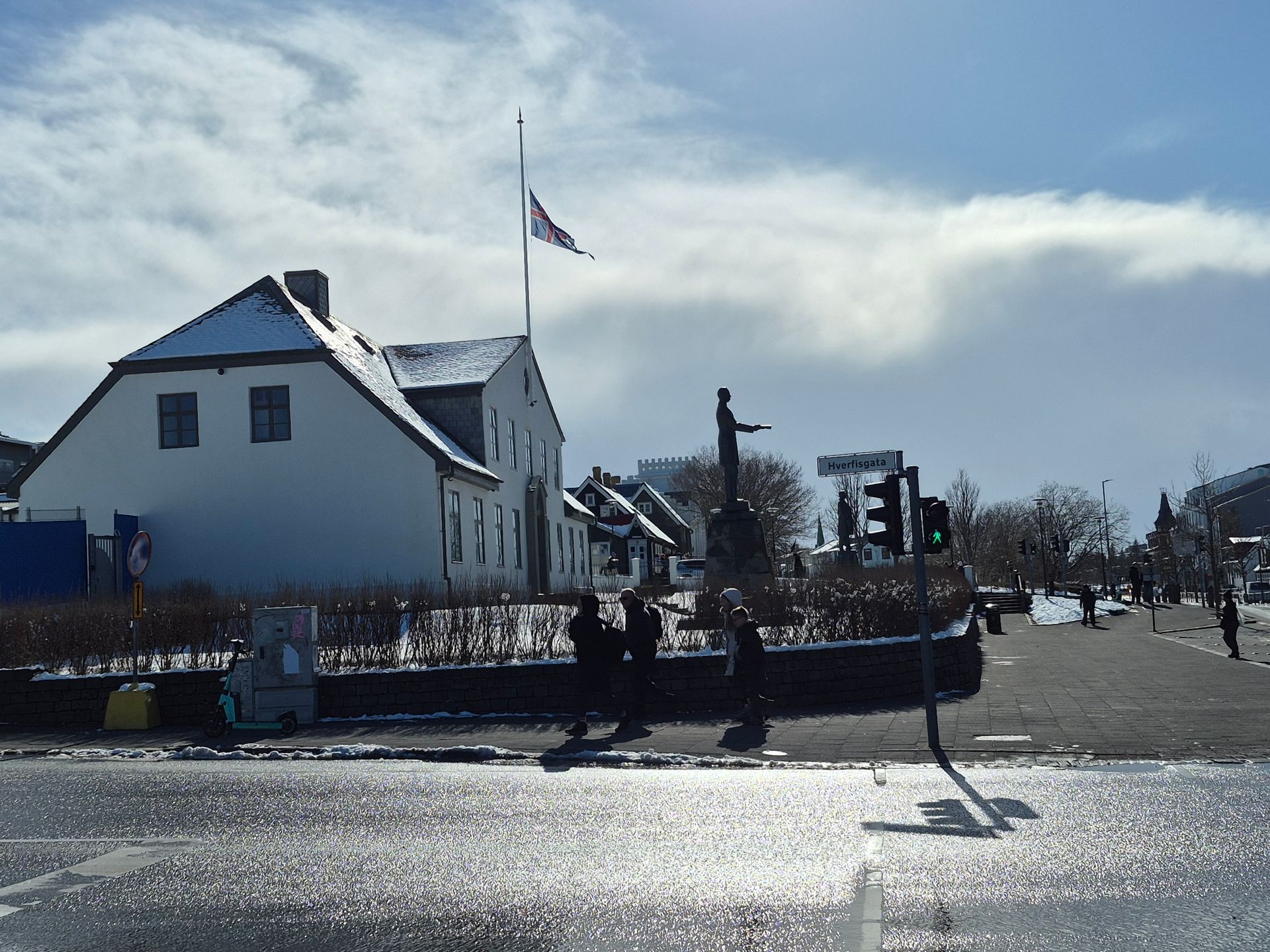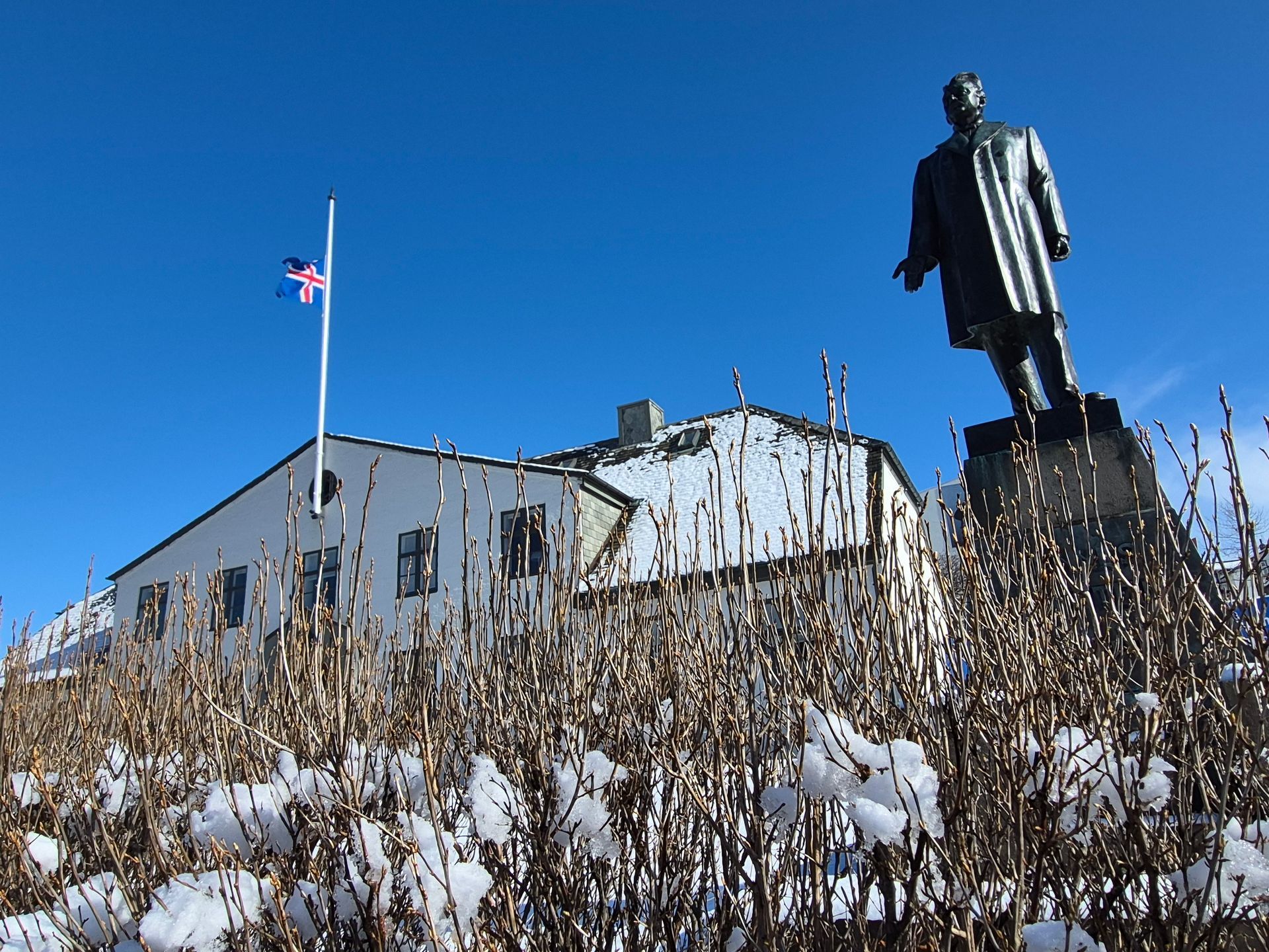 Styttan af Hannesi Hafstein fyrir utan stjórnarráðið.