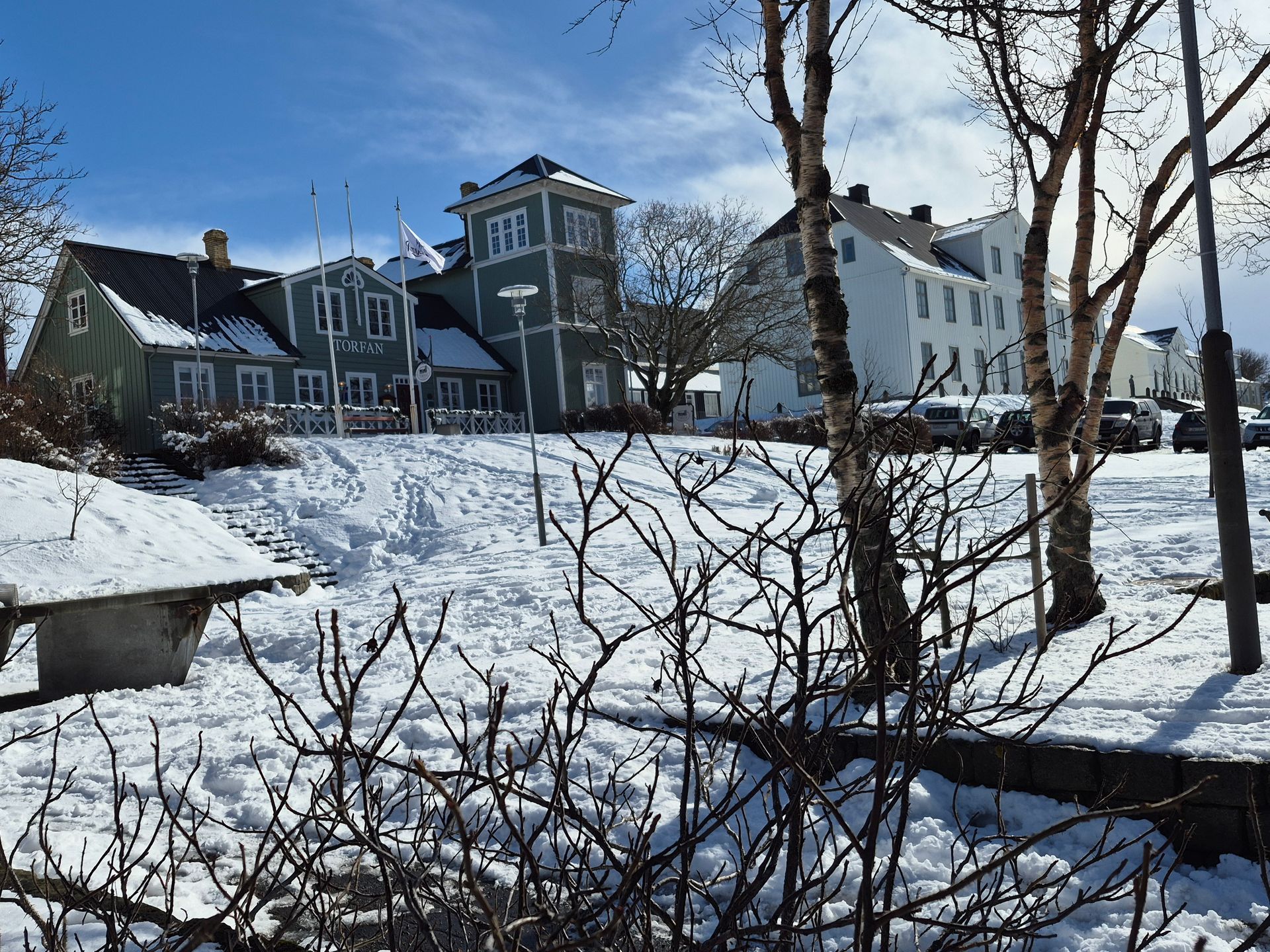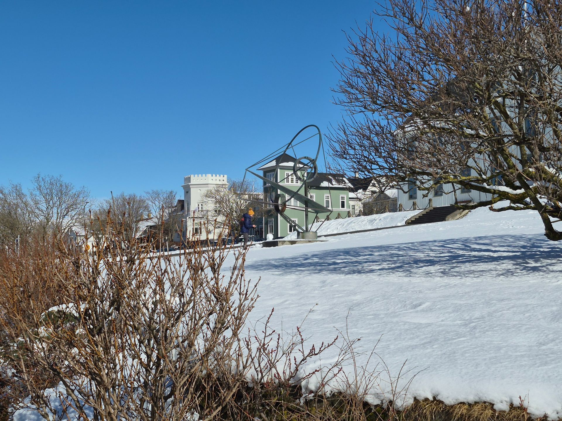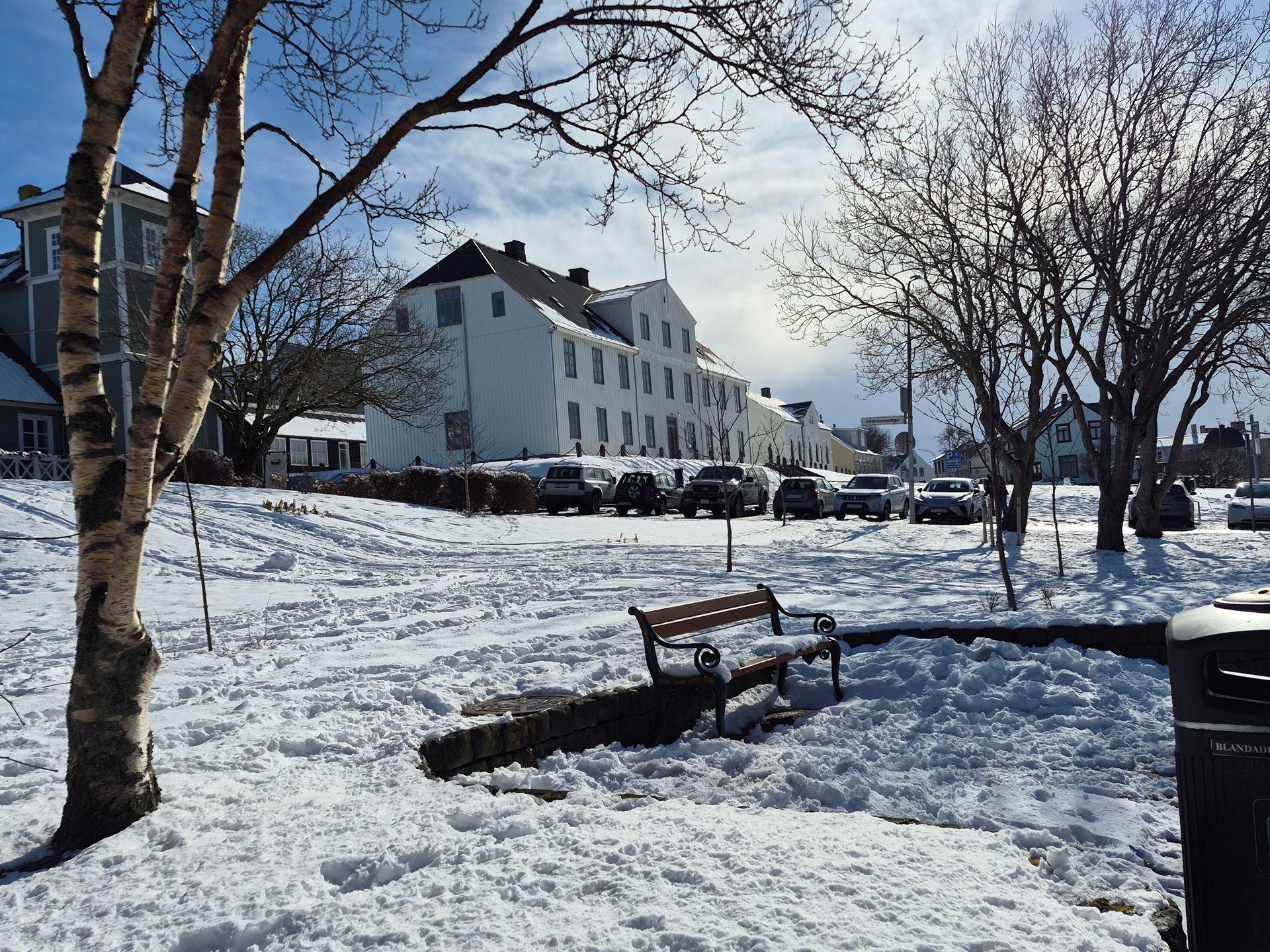 Hvað um það, miðbærinn skartaði sínu fegursta í sólskininu og sólbráðin var áberandi á þessum þriðja degi apríl þar sem svolítið vetrarríki setur enn svip sinn á bæinn.