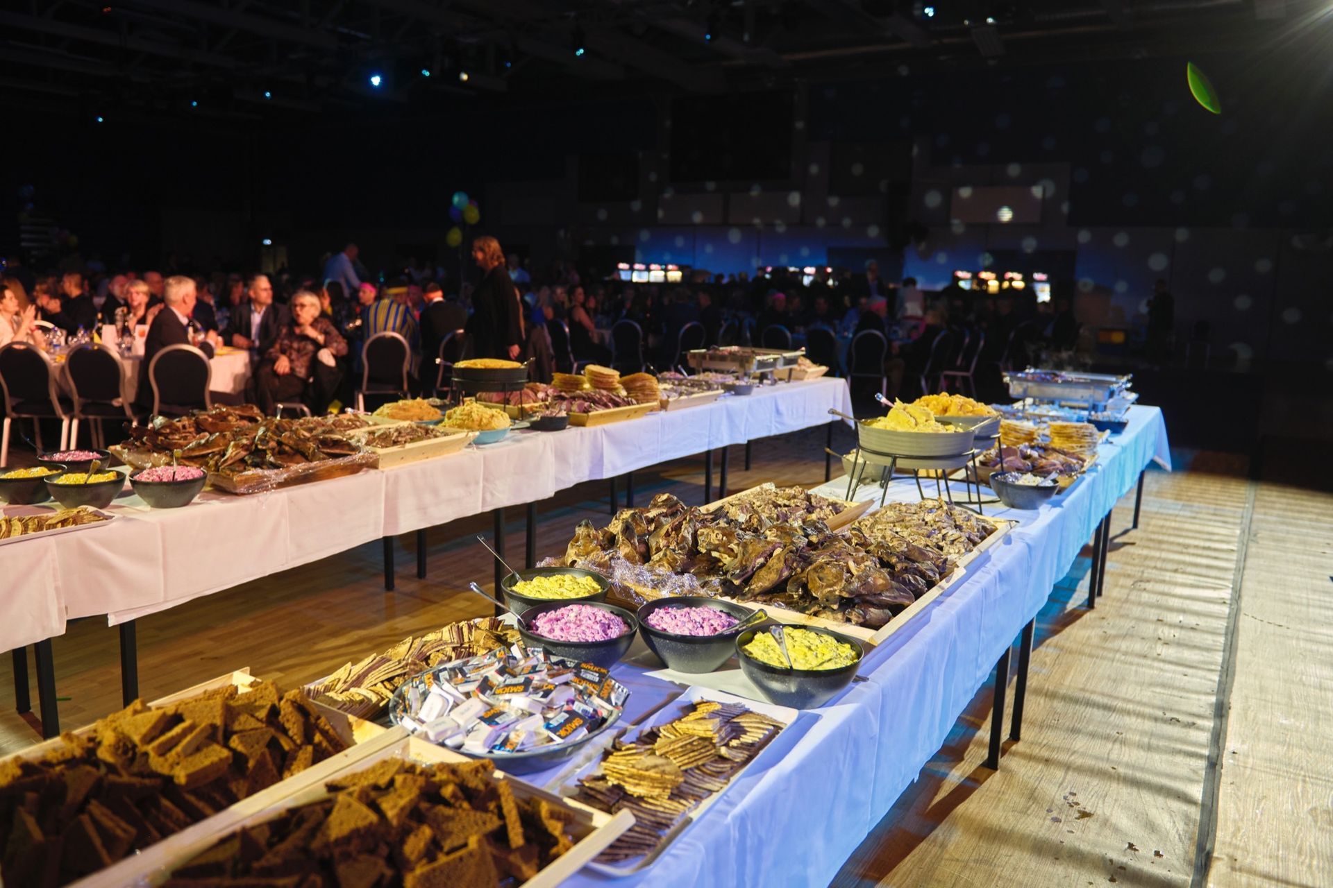 Múlakaffi sér um kræsingarnar; rúbgbrauð, síld, kjamma, hangikjöt, rófustöppu, síld og áfram mætti telja - og svo verður þarna „hefðbundinn veislumatur“ fyrir þá sem eru ekki klárir í þorrakræsingarnar.