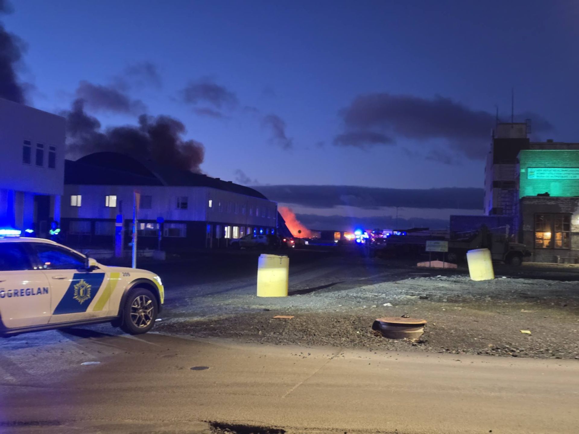 Allt tiltækt lið slökkviliðsins í Reykjavík á staðanum og lögreglan stöðvaði eðlilega alla umferð að hinni logandi skemmu.