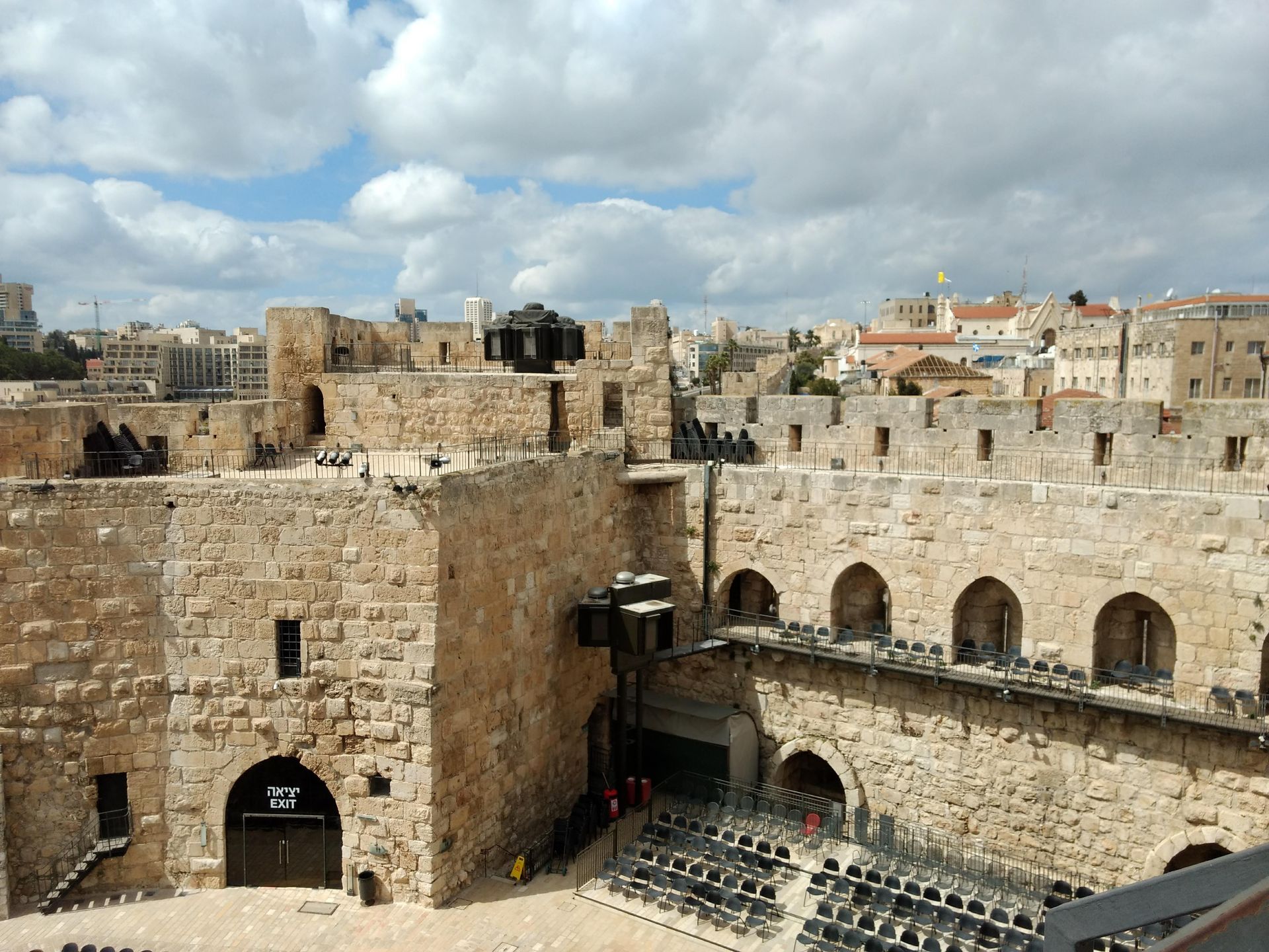 Á efstu hæð Davíðssafnsins sem er innan gömlu borgarmúranna í Jerúsalem. Eðli málsins samkvæmt liggja ferðlög til Ísraels núna niðri en flugfélagið WOW flaug beint til borgarinnar um tíma.