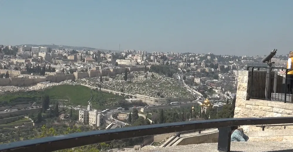 Heimildarmyndina Á biblíuslóðum gerði ég á árinu 2019 og sýndi á sjónvarpsstöðinni Hringbraut um jólin það ár. Í myndinni ræði ég við Gunnlaug A. Jónsson, fyrrum prófessor í guðfræði við HÍ, sem er svili minn og við fjölskyldan ferðuðumst með um landið á meðan á dvöl okkar stóð og ég sankaði að mér efni. Hér er horft yfir Jerúsalem frá vesturhlið Ólífufjallsins.