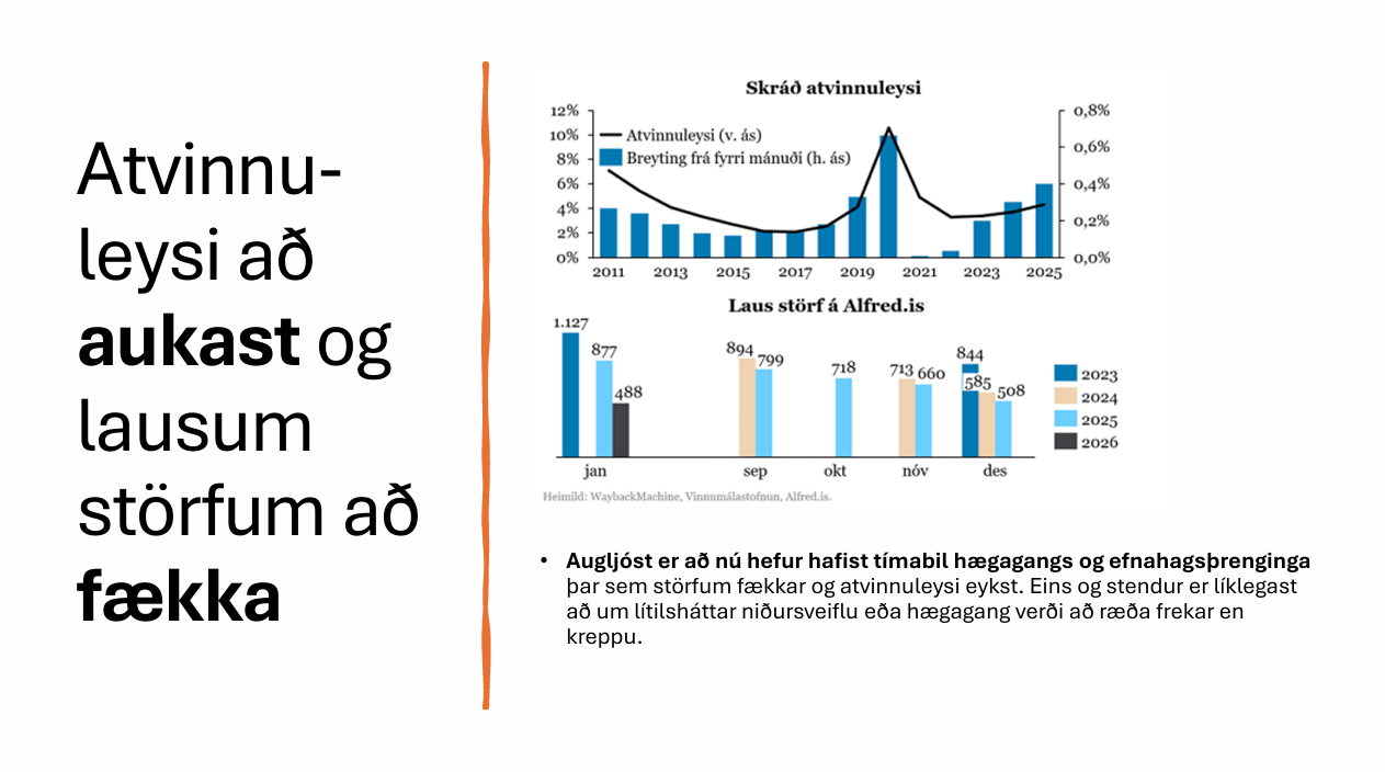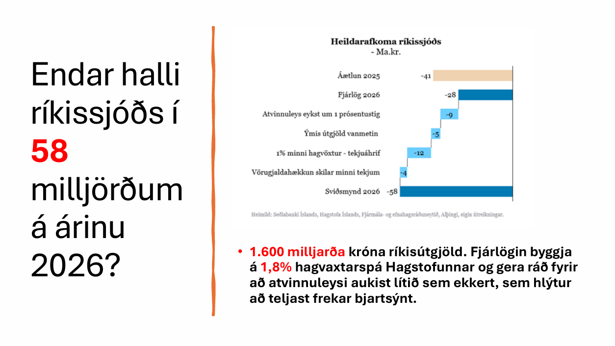 Hann ræðir ræðir m.a. um að óseldar íbúðir hrannast upp á höfuðborgarsvæðinu; að skristofukostnaður borgarinnar á hvern íbúa er langtum meiri en hjá öðrum sveitarfélögum; hvort hallinn á nýsamþykktum fjárlögum ríkisstjórnarinnar sé stórlega vanmetinn og síðast en ekki síst hvort atvinnuleysi sé að aukast og störfum að fækka.