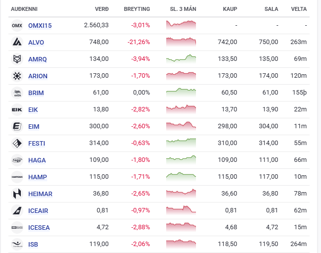 Úrvalsvísitalan hefur lækkað um 3%.