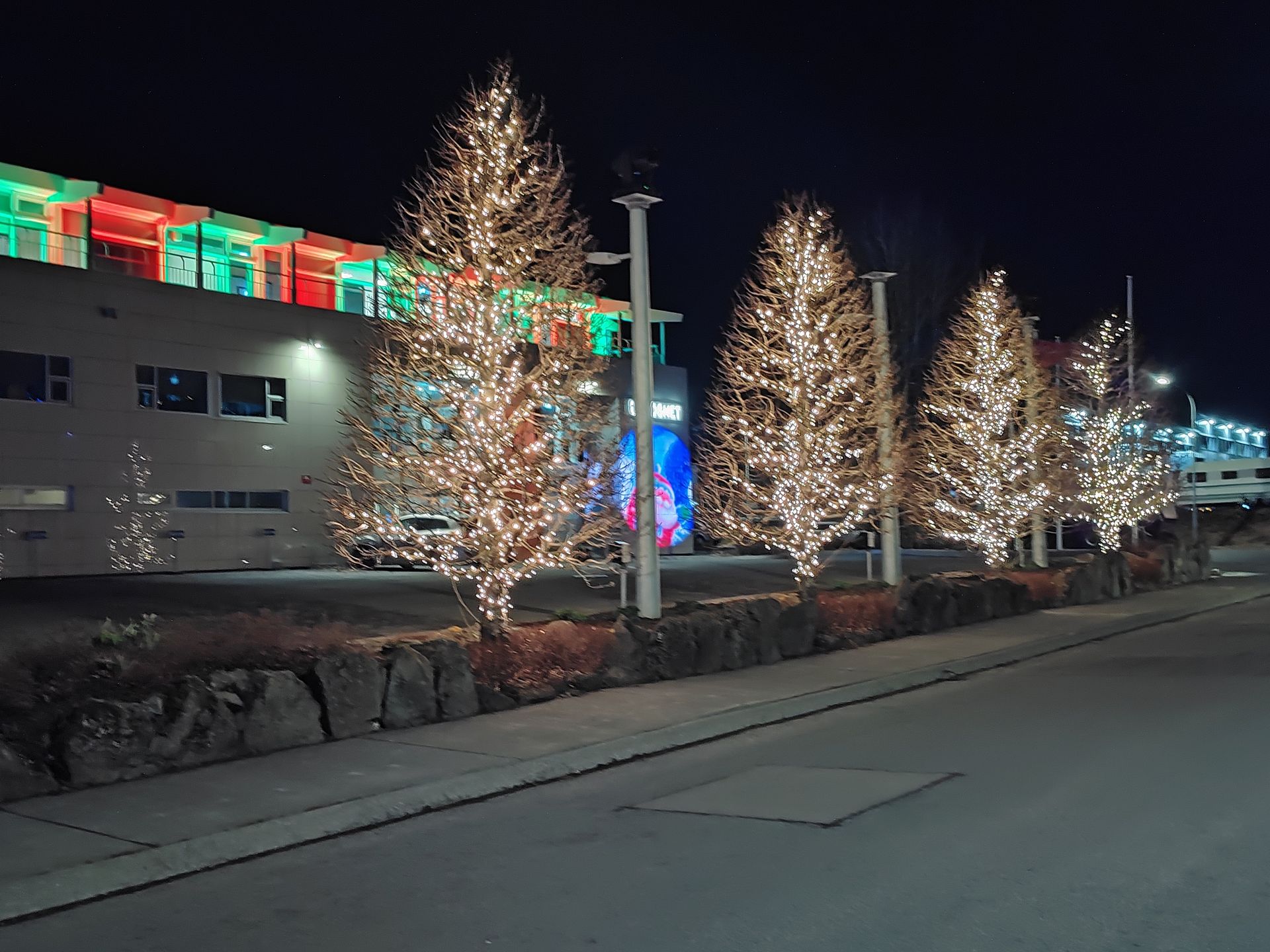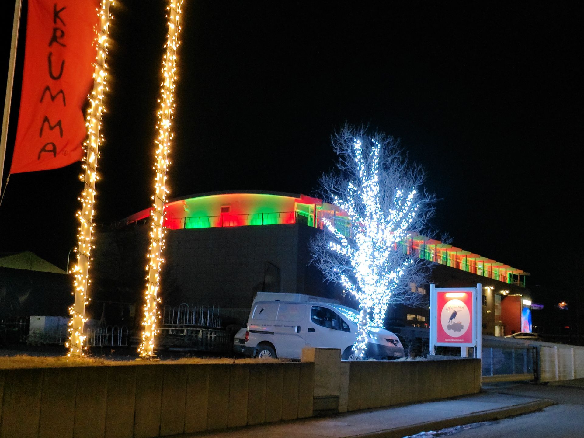 Bæði vel skært og skreytt við fyrirtækið Krumma sem selur leiktæki - og er við hliðina á Landsneti.