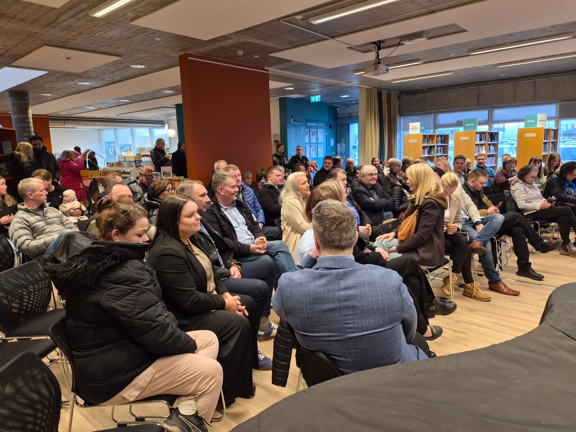 Klukkan rúmlega fimm og beðið eftir borgarstjóra. „Tafðistu í umferðinni,“ var hún spurð um og hún neitaði því. Þá skellihló salurinn.