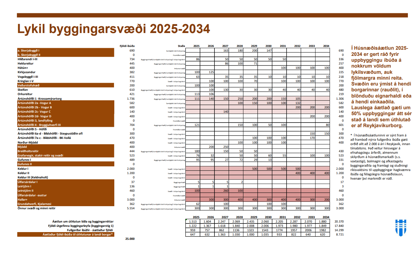 Lykilbyggingarsvæði borgarinnar næstu tíu árin, skv. Húsnæðisáætluninni.