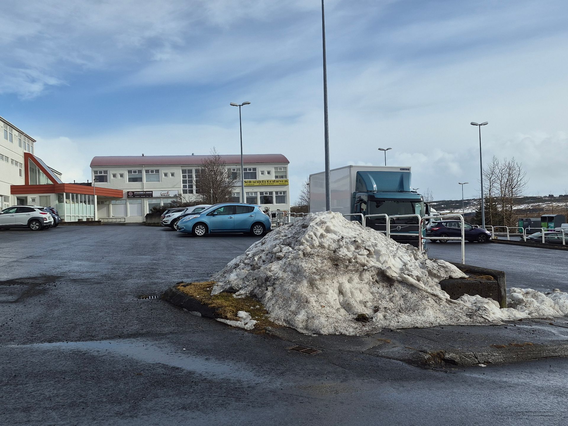 Það hefur gengið hratt á skaflana í rigningu og hlýjunum síðustu daga. Þegar við vorum á ferð um Grafarvoginn eftir hádegi á sunnudag, páskadag, var sannarlega vetrarríki og gul viðvörun í kortunum fyrir annan í páskum.