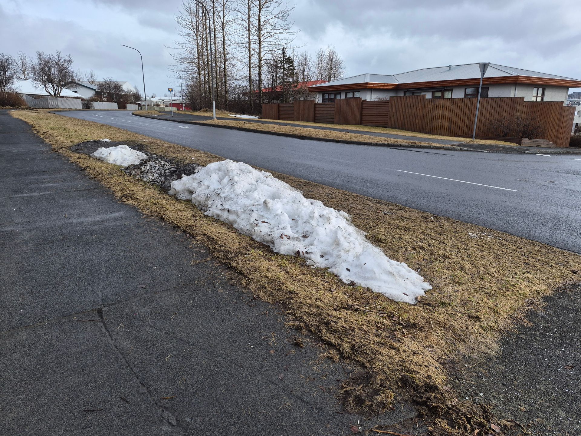 Snjóbræðsla í Grafarvogi á þremur sólarhringum - gengið hratt á skaflana