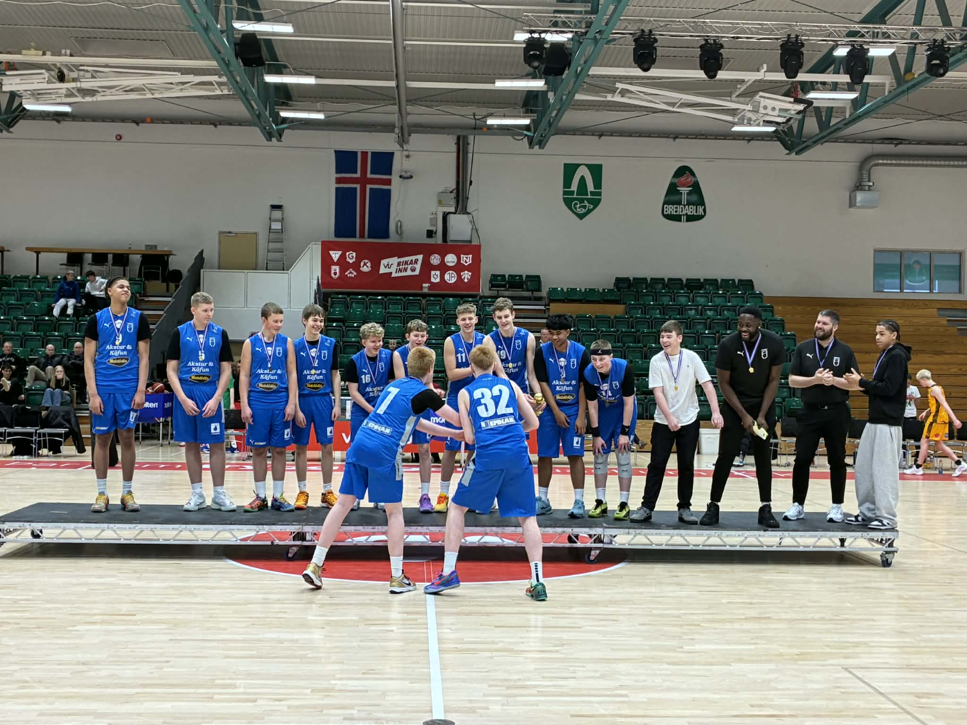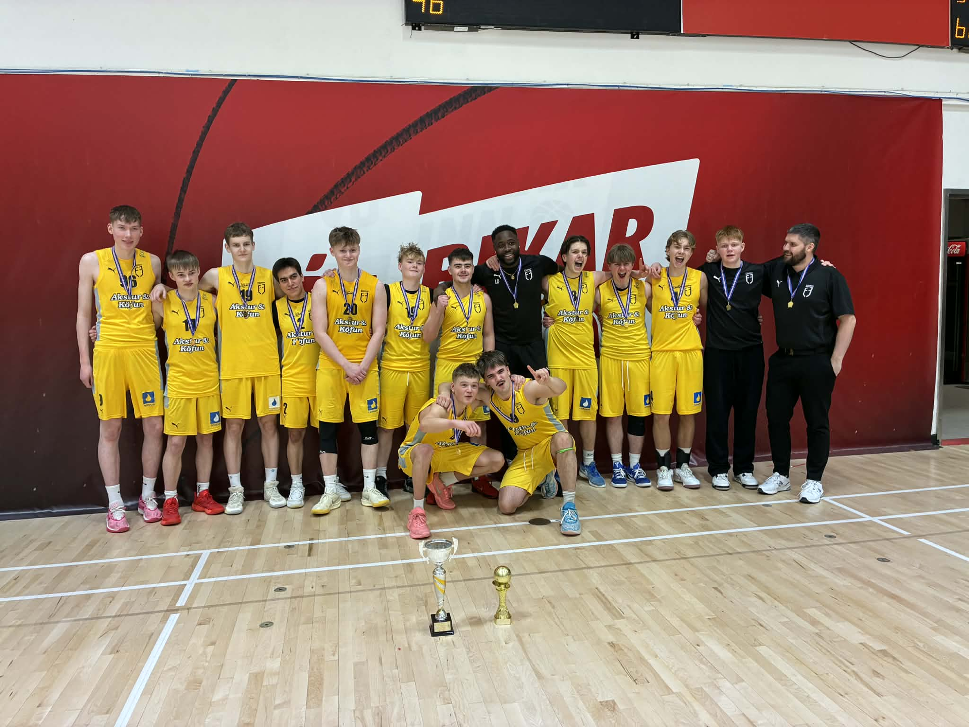 Bikarmeistarar 2026. Enginn smá fögnuður, eðlilega, hjá strákunum í 11. flokki (16 ára) eftir nauman sigur á KR-ingum í úrslitaleiknum.