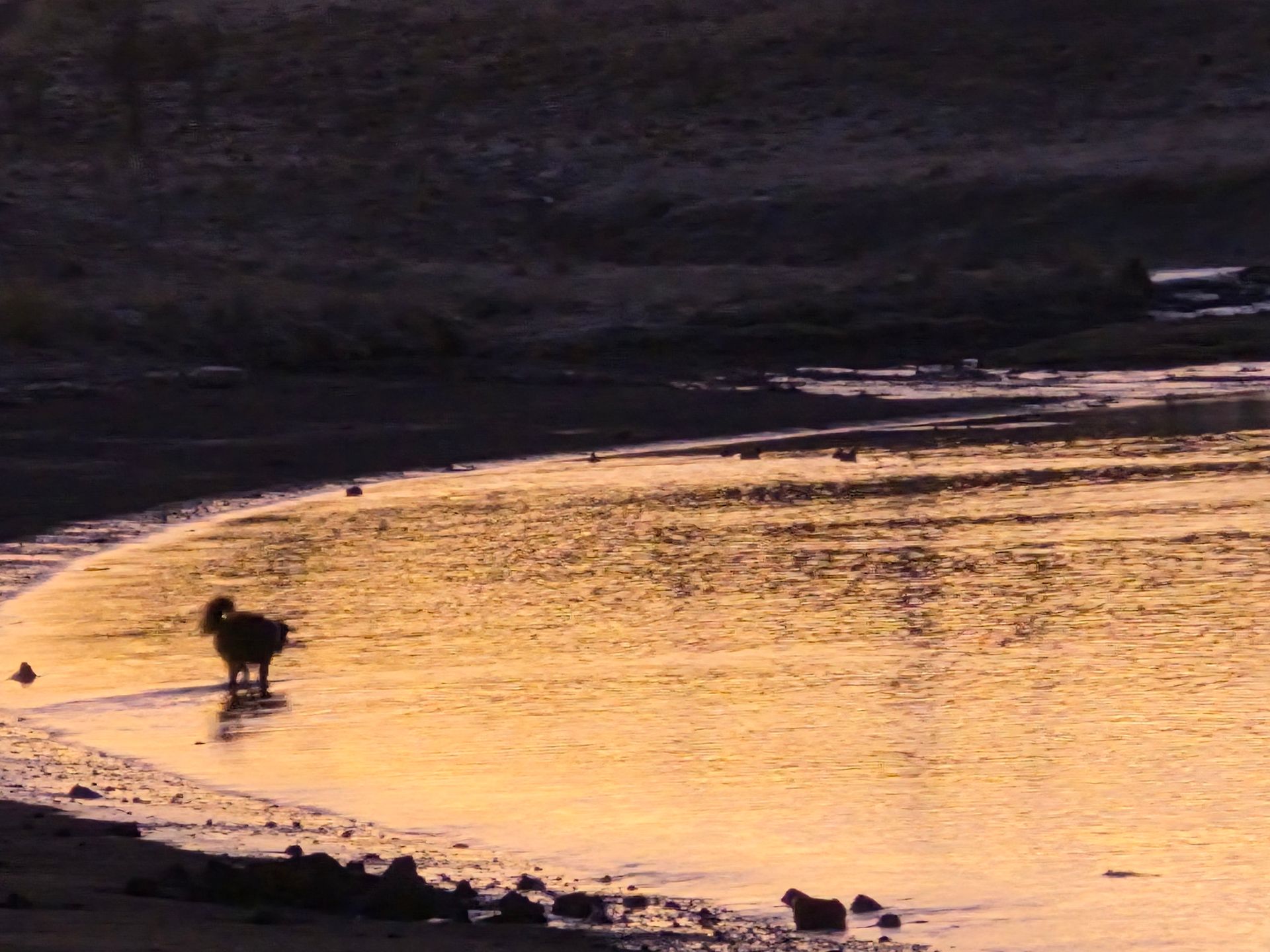 Hann var spenntur þessi seppi þar sem hann óð út í ískaldan sjóinn við Geldinganeseiði í rjómablíðu ljósaskiptanna í dag. Fuglalífið iðaði í kringum hann og hann iðaði sjálfur í skinninu að vaða lengra.