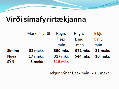 Fyrstu 9 mánuði ársins var hagnaður Símans tæpur 1 milljarður kr. og Nova rúmur hálfur milljarður.