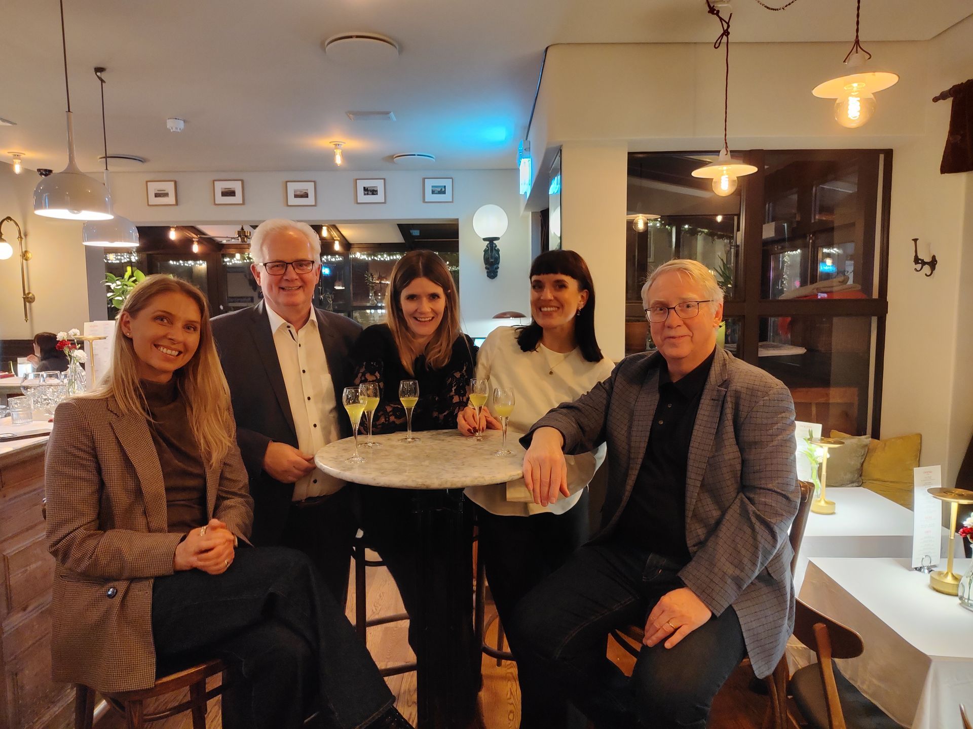 Það var fróðlegt að fá innsýn í umræðu Y-kynslóðarinnar og gaman að spjalla við þessar þenkjandi dömur á veitingastaðnum Snaps við Óðinstorg. Frá vinstri: Kara Hergils Valdimarsdóttir, 38 ára menningarstjórnandi, undirritaður, Jón G. Hauksson, Ásrún Magnúsdóttir, 37 ára danshöfundur, Berglind Pétursdóttir, 36 ára sjónvarps- og auglýsingakona, kunn sem Berglind Festival, rannsóknarblaðamaður í Vikunni með Gísla Marteini, og Sigurður Már Jónsson, félagi minn í hlaðvarpinu Hluthafaspjall ritstjóranna.